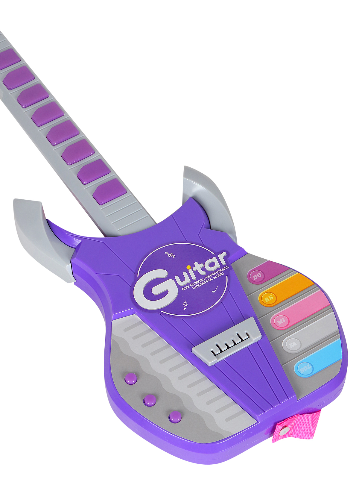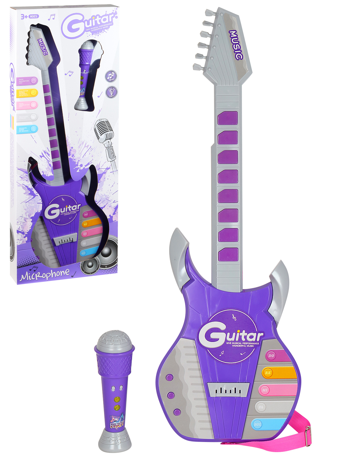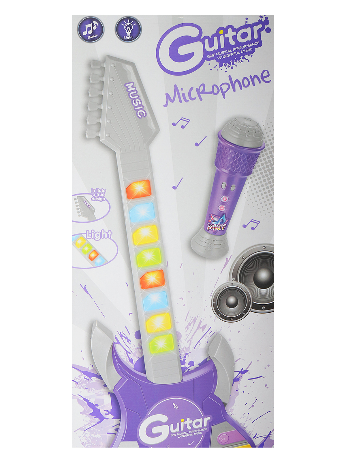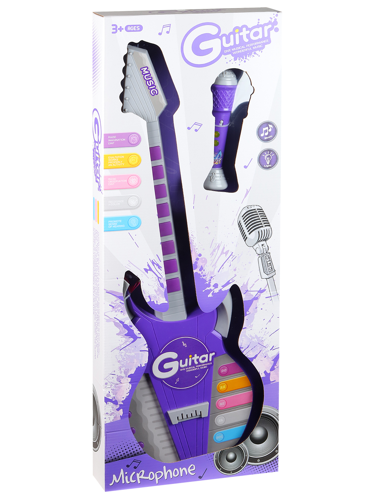 Детская электронная гитара с микрофоном, а также световыми и звуковыми эффектами - это игрушка, которая поможет ребенку вообразить себя настоящей звездой. Клавиши на грифе проигрывают мелодии и издают звуки. При нажатии клавиши подсвечиваются разными цвет