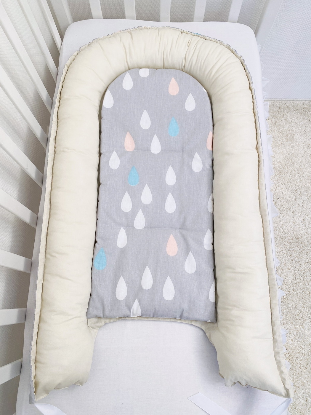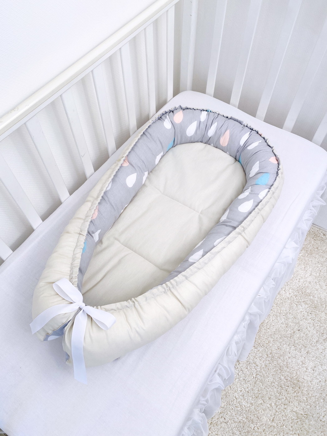 Комплектация:кокон + матрасОписание:Гнездышко идеальное место для сна малыша, ведь в нем уютно и спокойно как у мамы в животике. Кокон удобно использовать при совместном сне мамы и ребенка. Защитный валик не даст малышу перевернуться и защитит от сквозняк