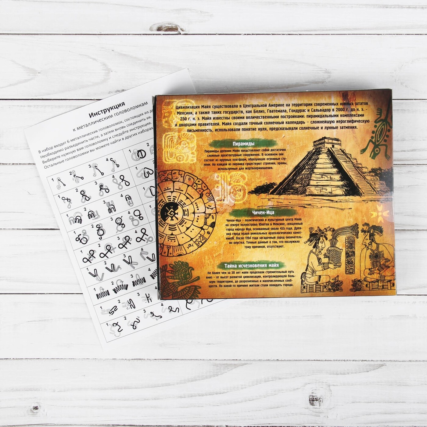 Комплектация:Головоломка металлическая «Загадки цивилизации Майя»Описание:Подарочный набор металлических головоломок из различных крючков нацелен на развитие IQ способностей детей и взрослых. При игре с этой головоломкой развивается логика, пространственн