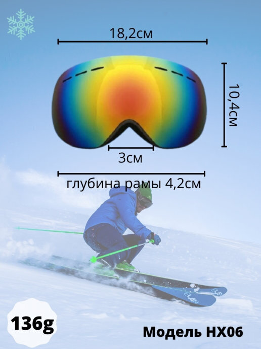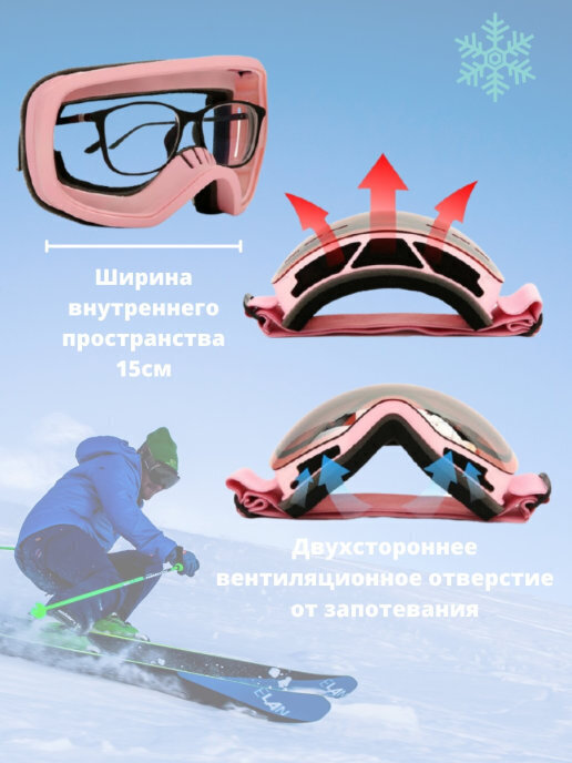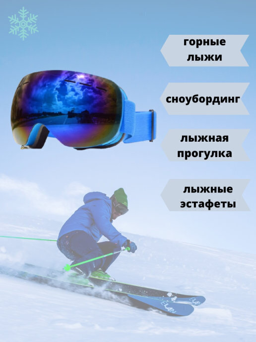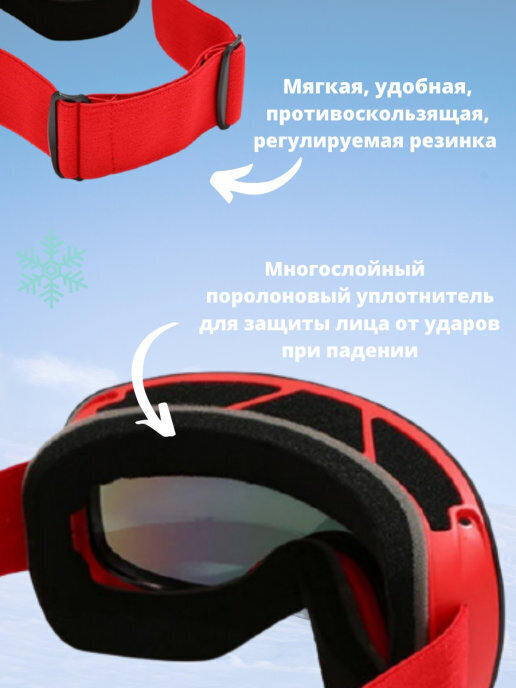 Очки горнолыжные с двойной линзой. Двойная линза горнолыжной маски не даст запотевать внутренней поверхности очков в зимних условиях, что является основным параметром при выборе очков для зимних видов спорта. Очки для сноуборда и лыж дают 100% защиту от у