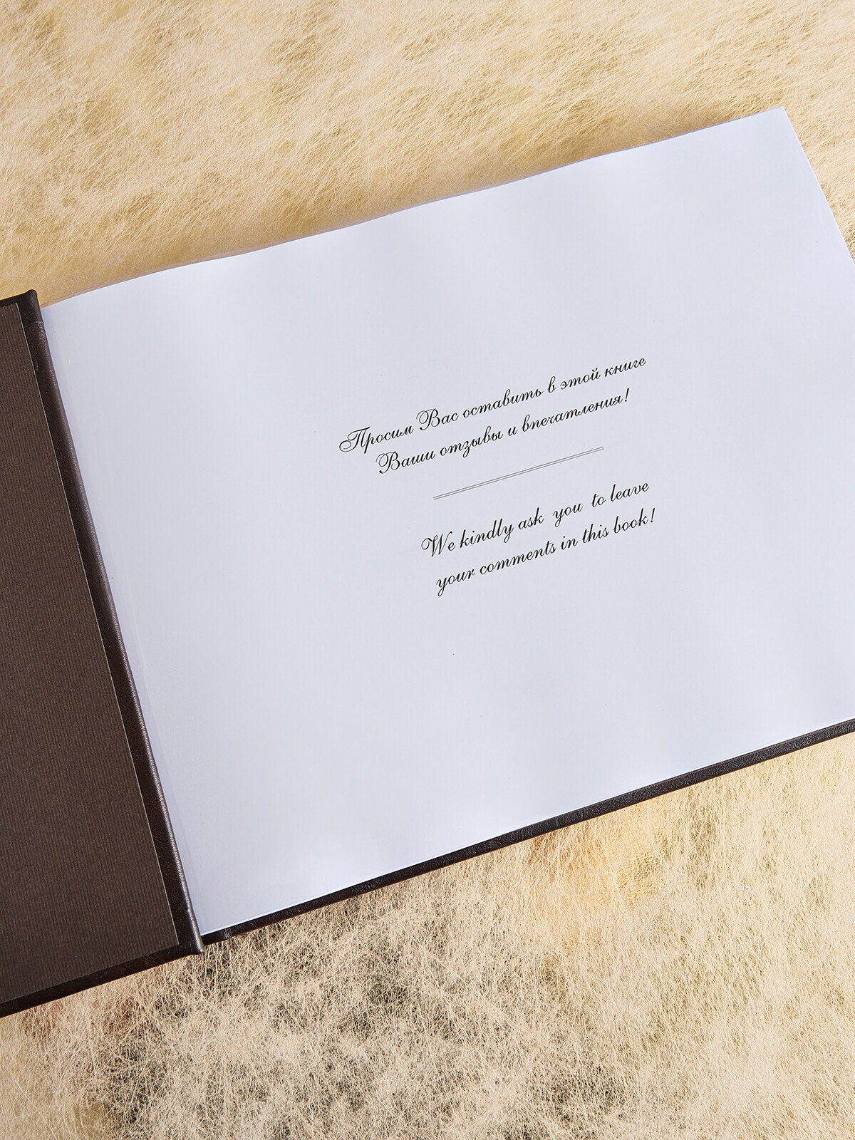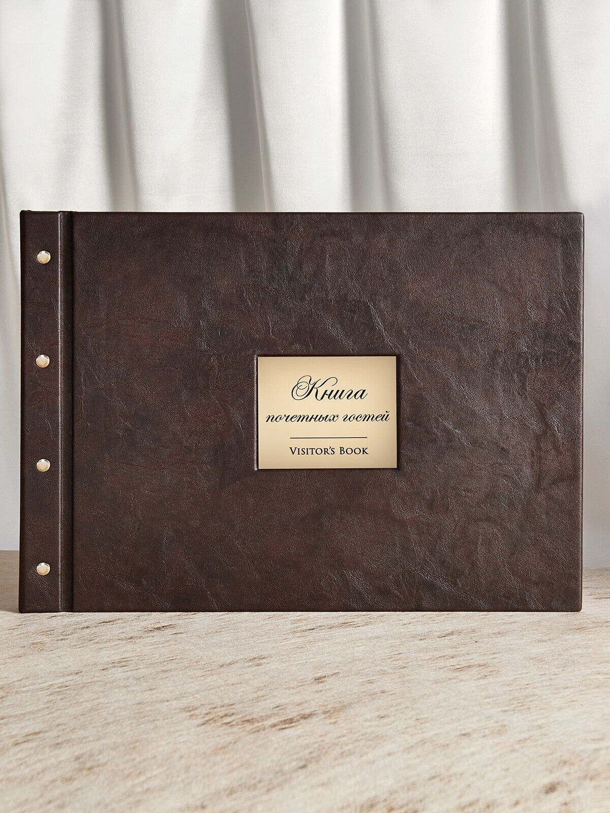 Гостевая книга для отзывов клиентов, гостей, посетителей. Шикарное исполнение обложки - экокожа оригинальной богатой фактуры, высокой износостойкости. Преимущество данной книги - сменный внутренний блок: с помощью болтов ЛЕГКО заменить блок на новый. Книг