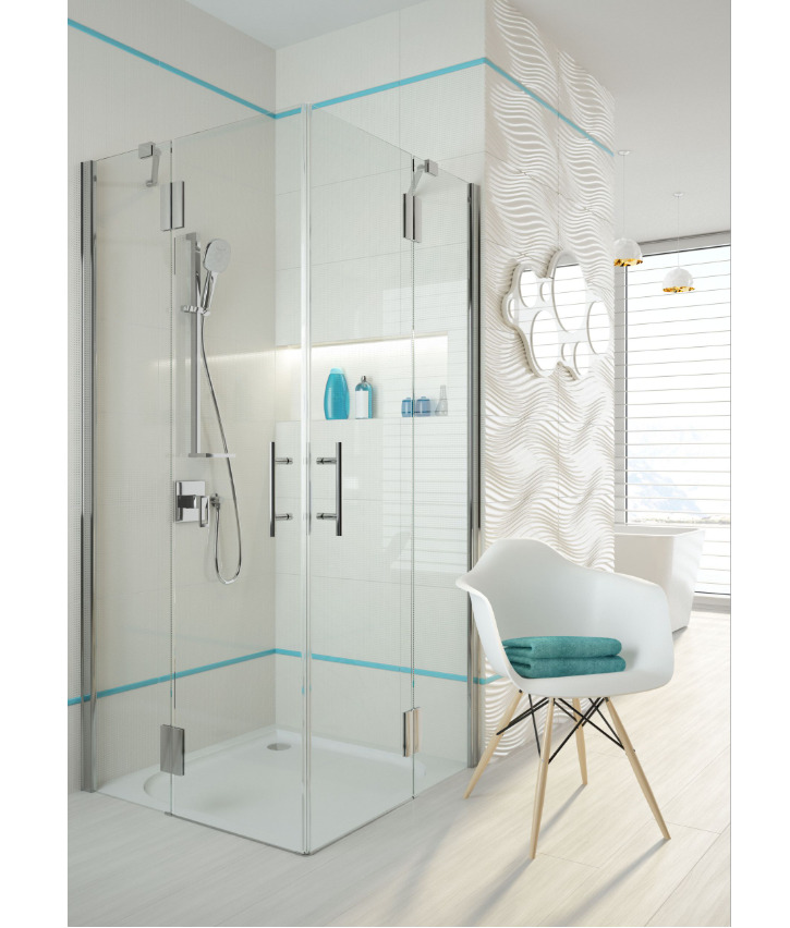 Комплектация:Прозрачное закаленное стекло; алюминиевая панель, скрывающая крепления; алюминиевая пороговая планка; смеситель; верхний душ; душевой шланг; ручная лейка; керамический картридж; угловой соединитель; гарантийный талон.Описание: