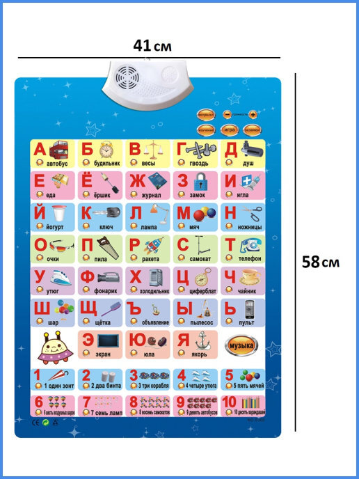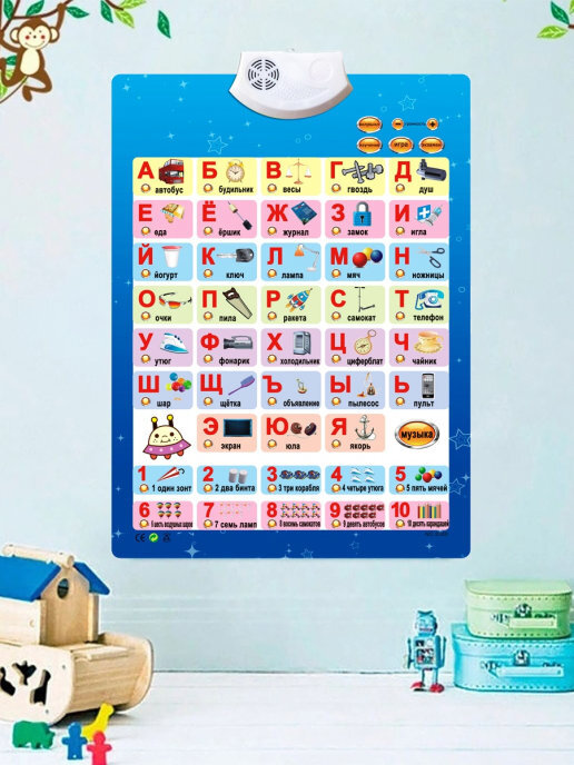 Говорящая азбука «Мой первый алфавит» поможет изучить ребенку русский алфавит, обучиться счету от 1 до 10, а также запомнить цвета. Вы сможете изучить с ребенком не только буквы, цифры, цвета, счет, но и поможете развить его память, внимательность и усидч