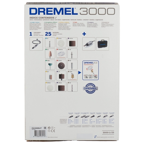 Комплектация25 аксессуаров, гибкий вал, подставка, кейс