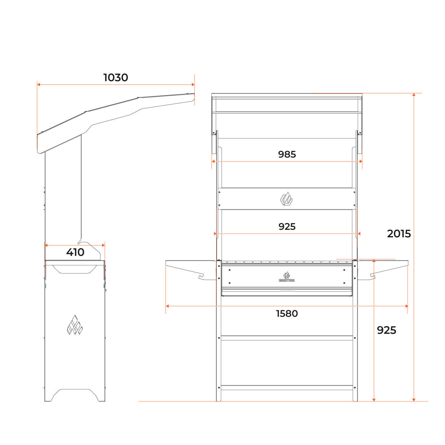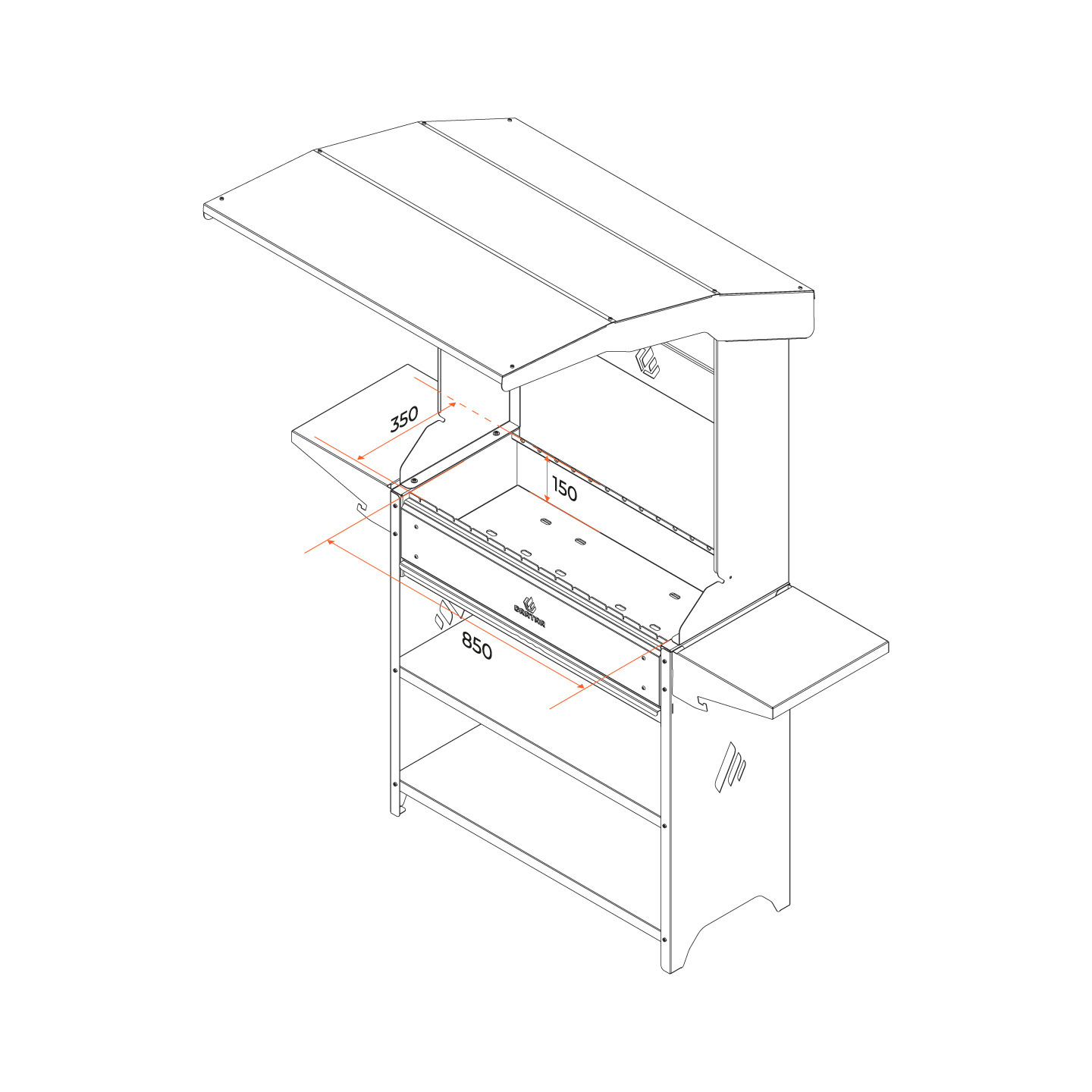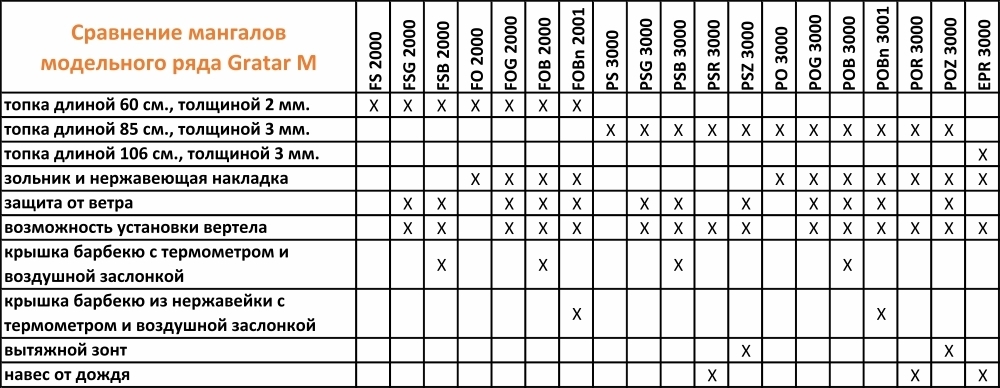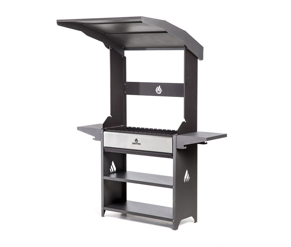 ОсобенностиКрыша, Термометр, Дровница, Защита от ветра, Боковой столик, Регулировка подачи воздуха, Вертел, Навес