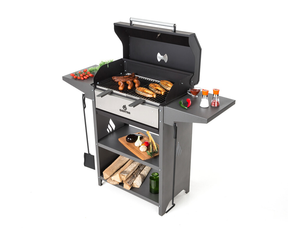 Отличный гриль-мангал для семейных посиделок. Топка с декоративной накладкой из нержавеющей стали и выдвижным зольником для регулировки интенсивности жара. Выдерживает дровяную растопкуВыдвижной зольник для регулировки интенсивности жараДекоративная панел