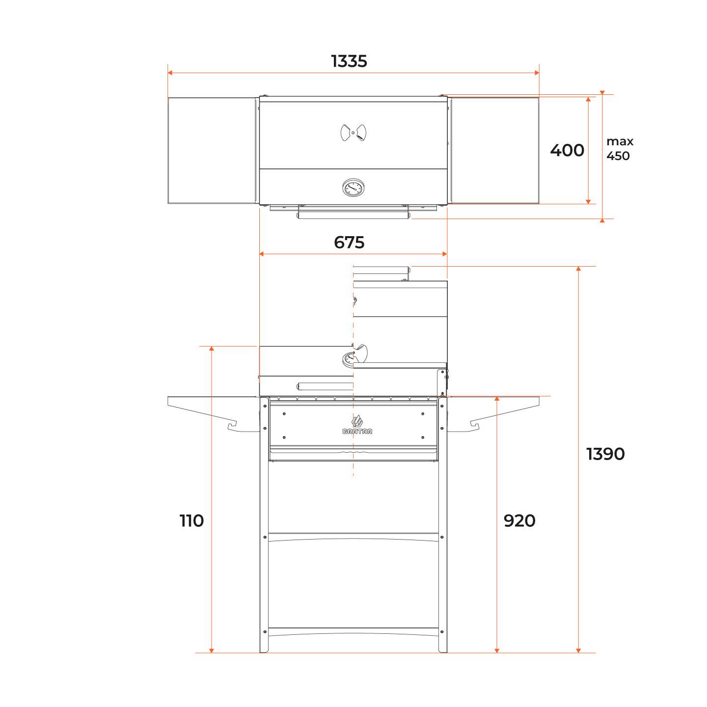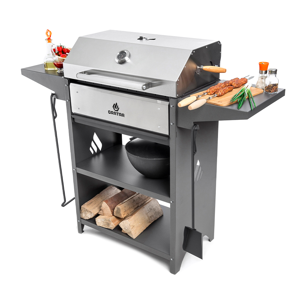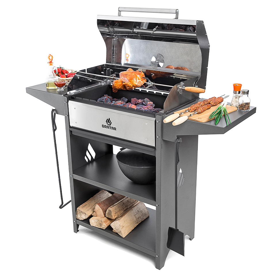 ОсобенностиКрыша, Термометр, Дровница, Защита от ветра, Боковой столик, Вертел, Функция нагрева