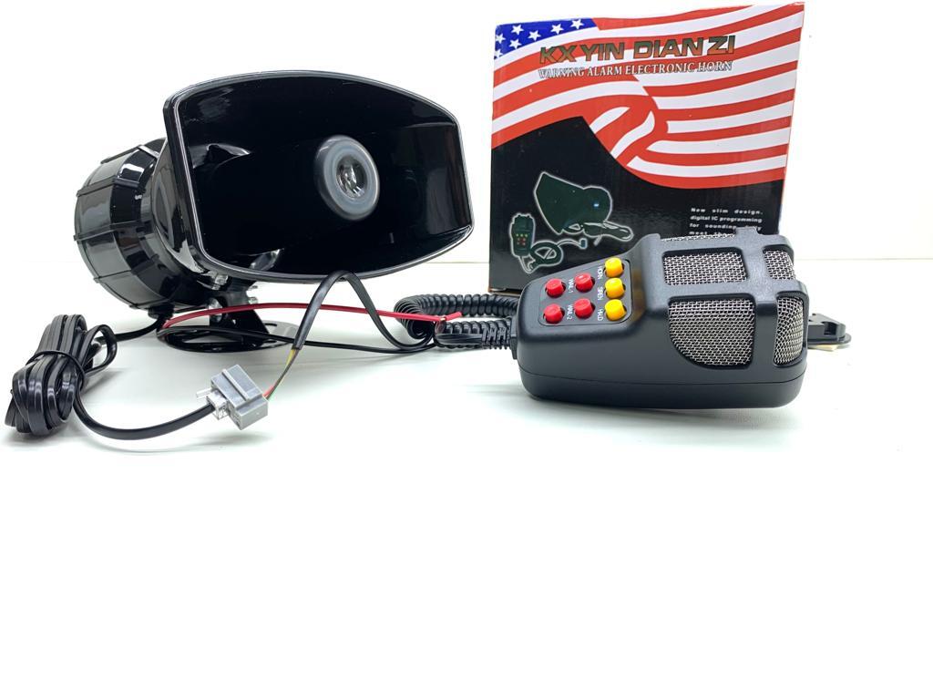 Данная сирена выдает мощный сигнал, который слышно на большом расстоянии. Звук, который будет издавать сирена, можно выбрать самостоятельно. Также в комплект входит громкоговоритель.На пульте управления расположены следующие кнопки - сбоку кнопка громкого
