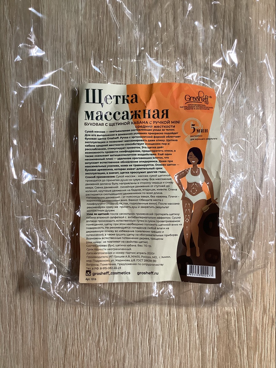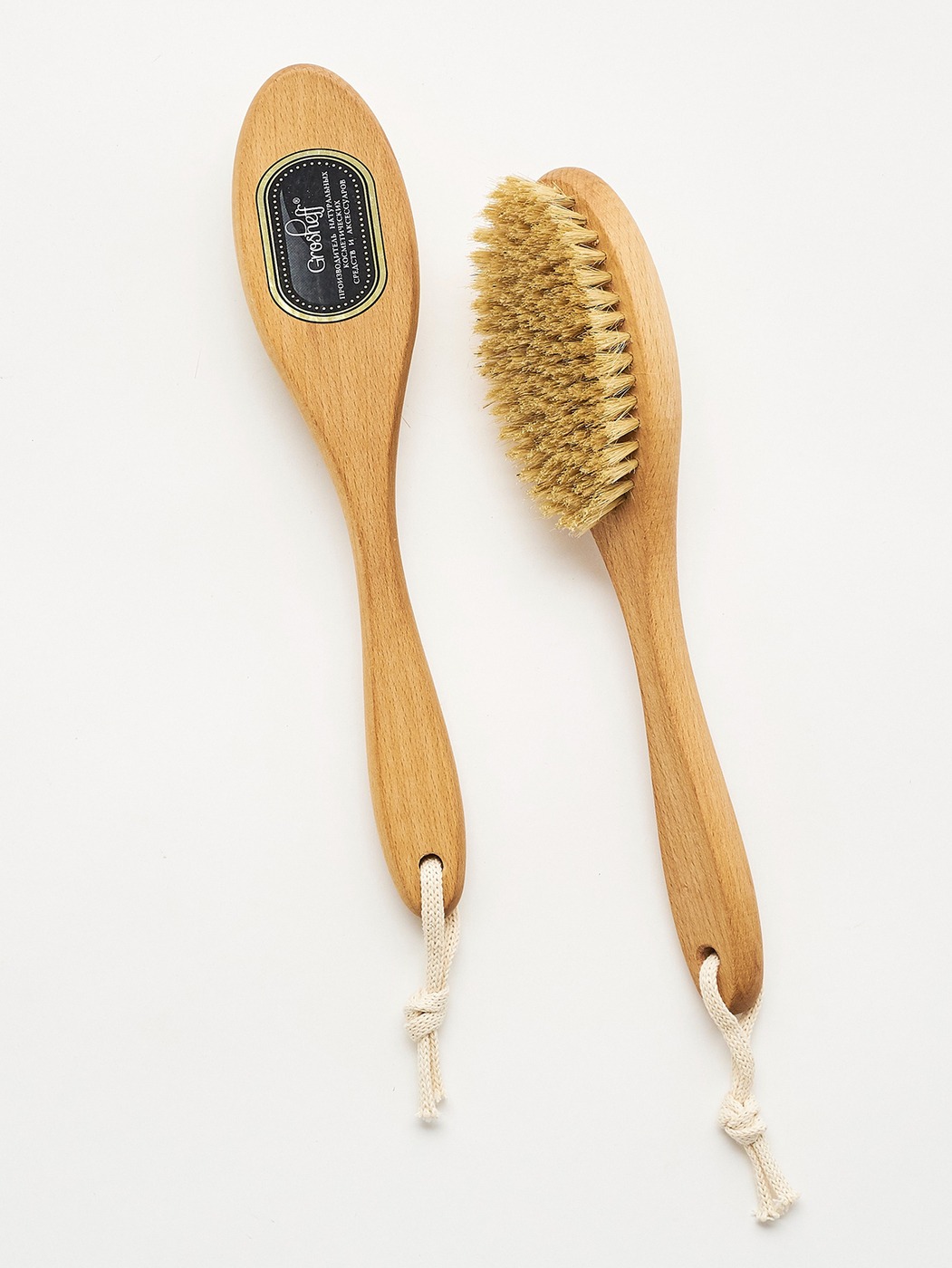 Сухой массаж - неотъемлемая составляющая ухода за телом. Для его выполнения в домашних условиях прекрасно подойдет буковая щетка Grosheff. Ручка с эргономичной формой облегчает эксплуатацию и позволяет массажировать даже спину. Щетина кабана средней жестк