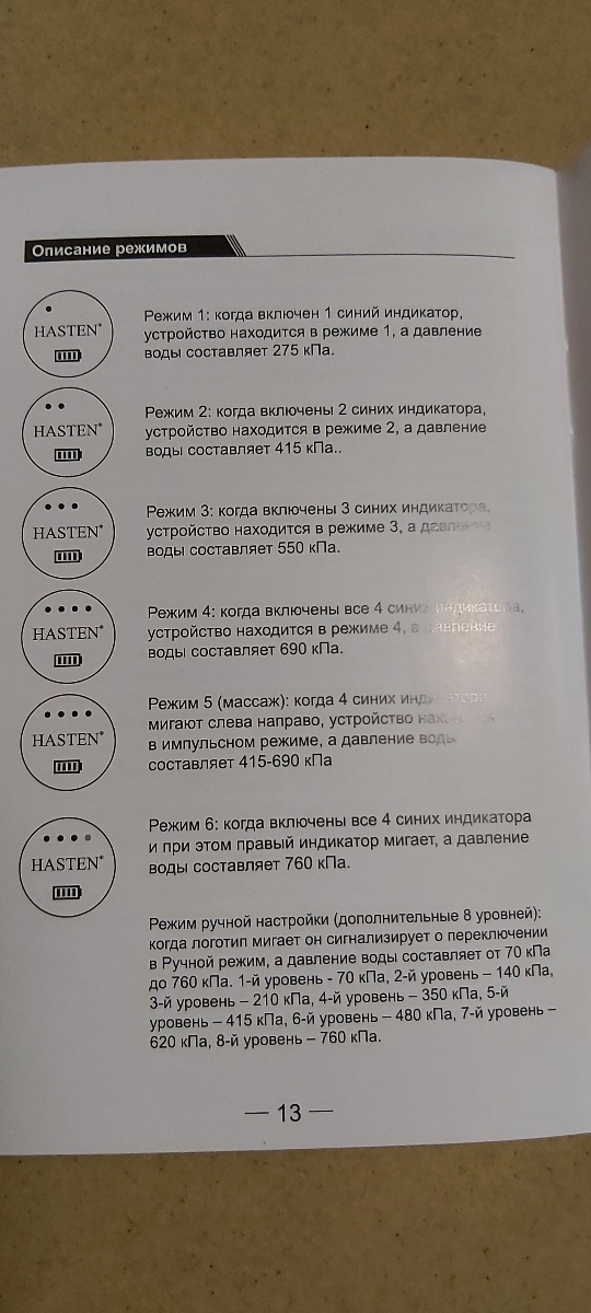 Режимы работыПульсирующий режим, Массаж, Деликатная чистка, Чистка, Режим обучения