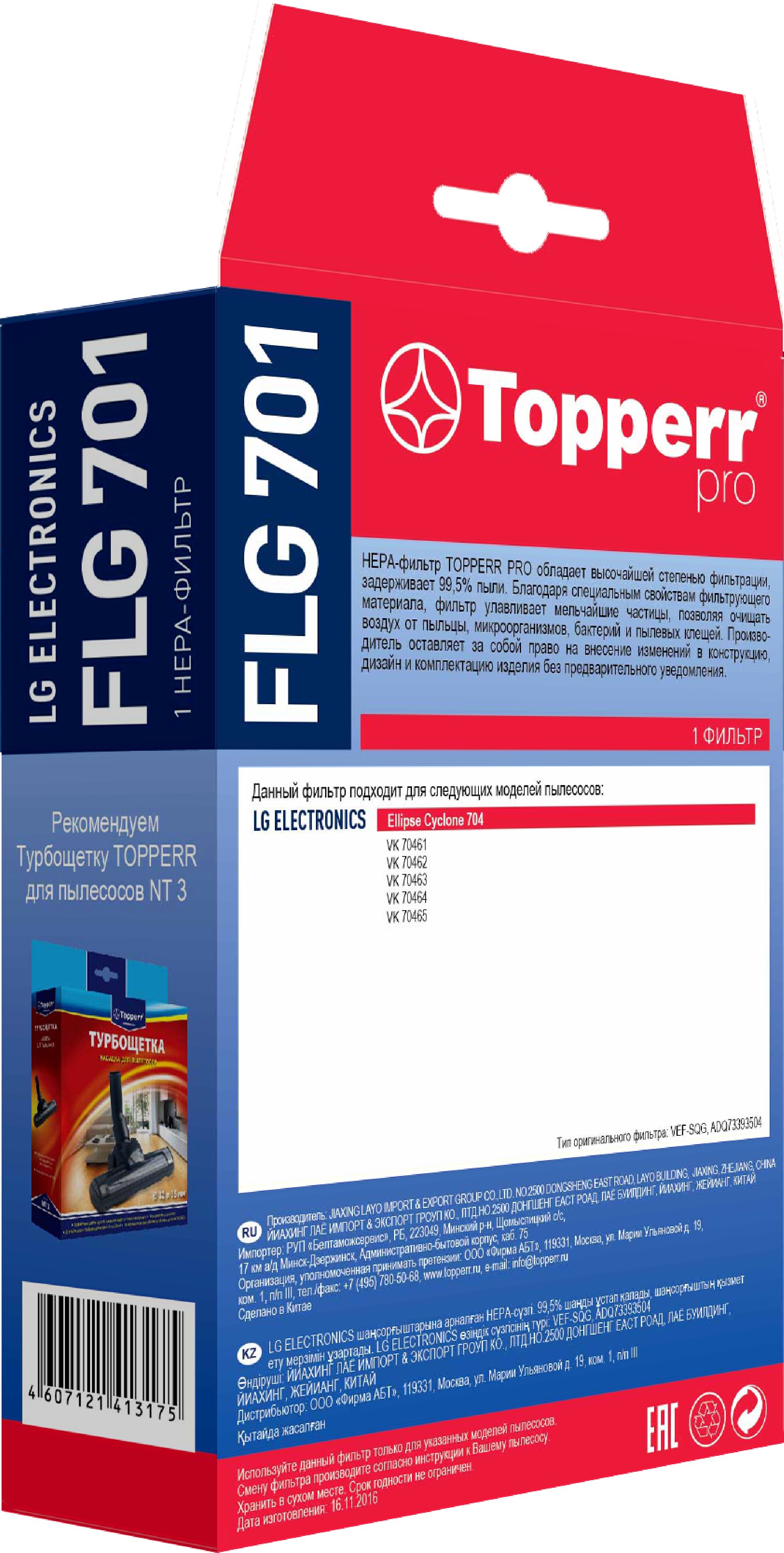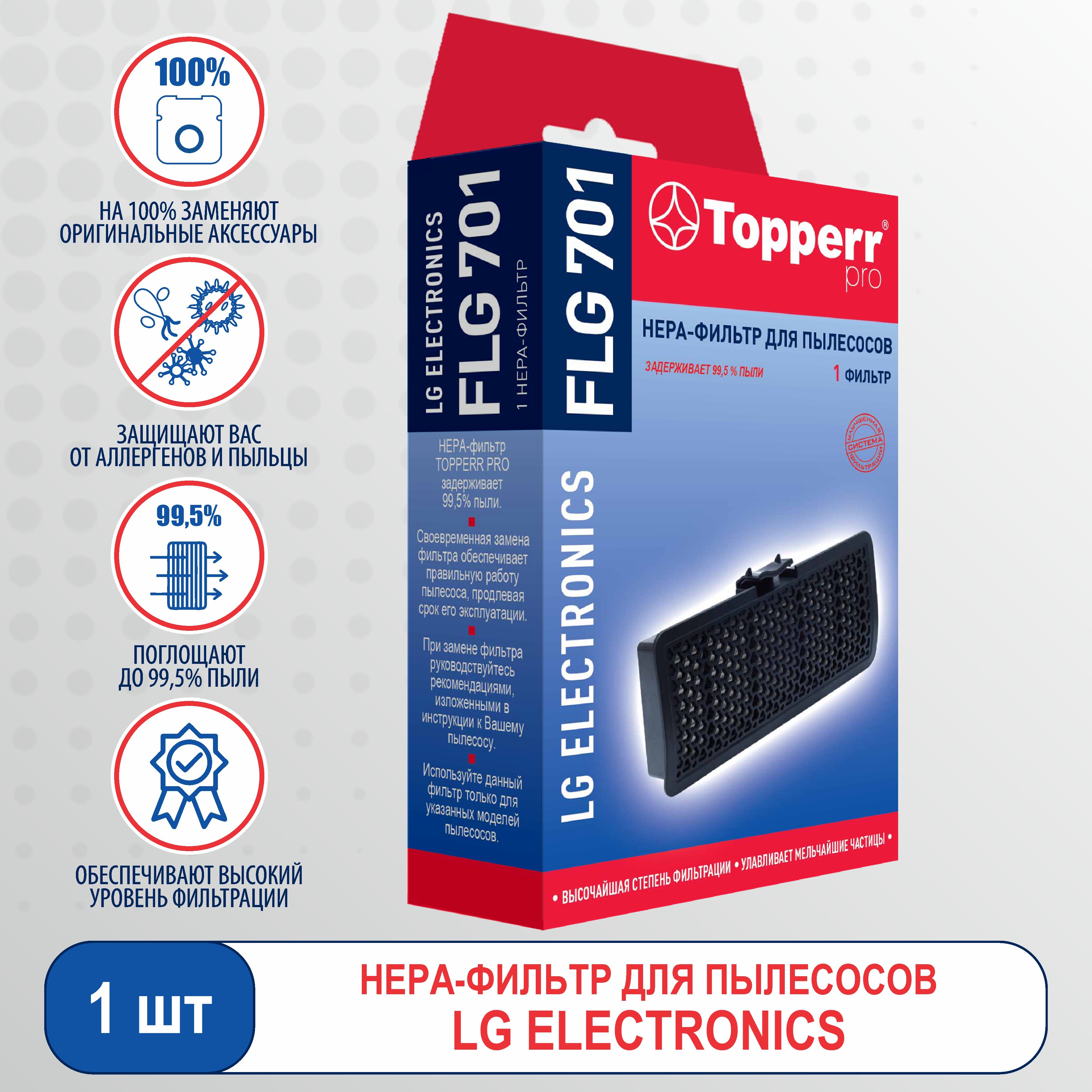 HEPA-фильтр Topperr FLG 701 предназначен для пылесосов LG ELECTRONICS. Обладает высочайшей степенью фильтрации, задерживает 99,5 % пыли. Благодаря специальной концентрации и свойствам фильтрующего материала, фильтр улавливает мельчайшие частицы, позволяя
