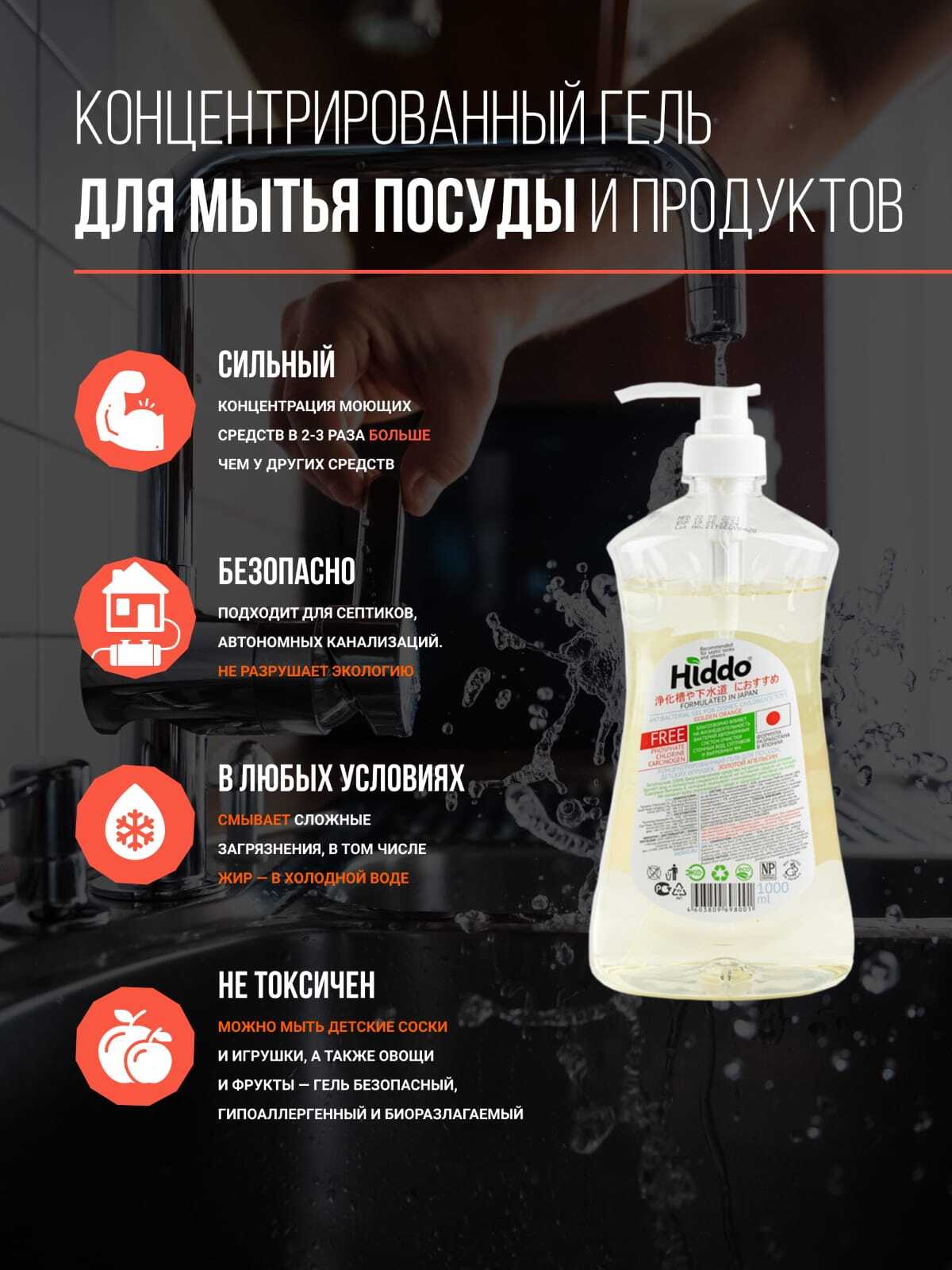 Особенности примененияЭкосредство, Гипоаллергенность, Антибактериальный эффект, Эффективен в холодной воде
