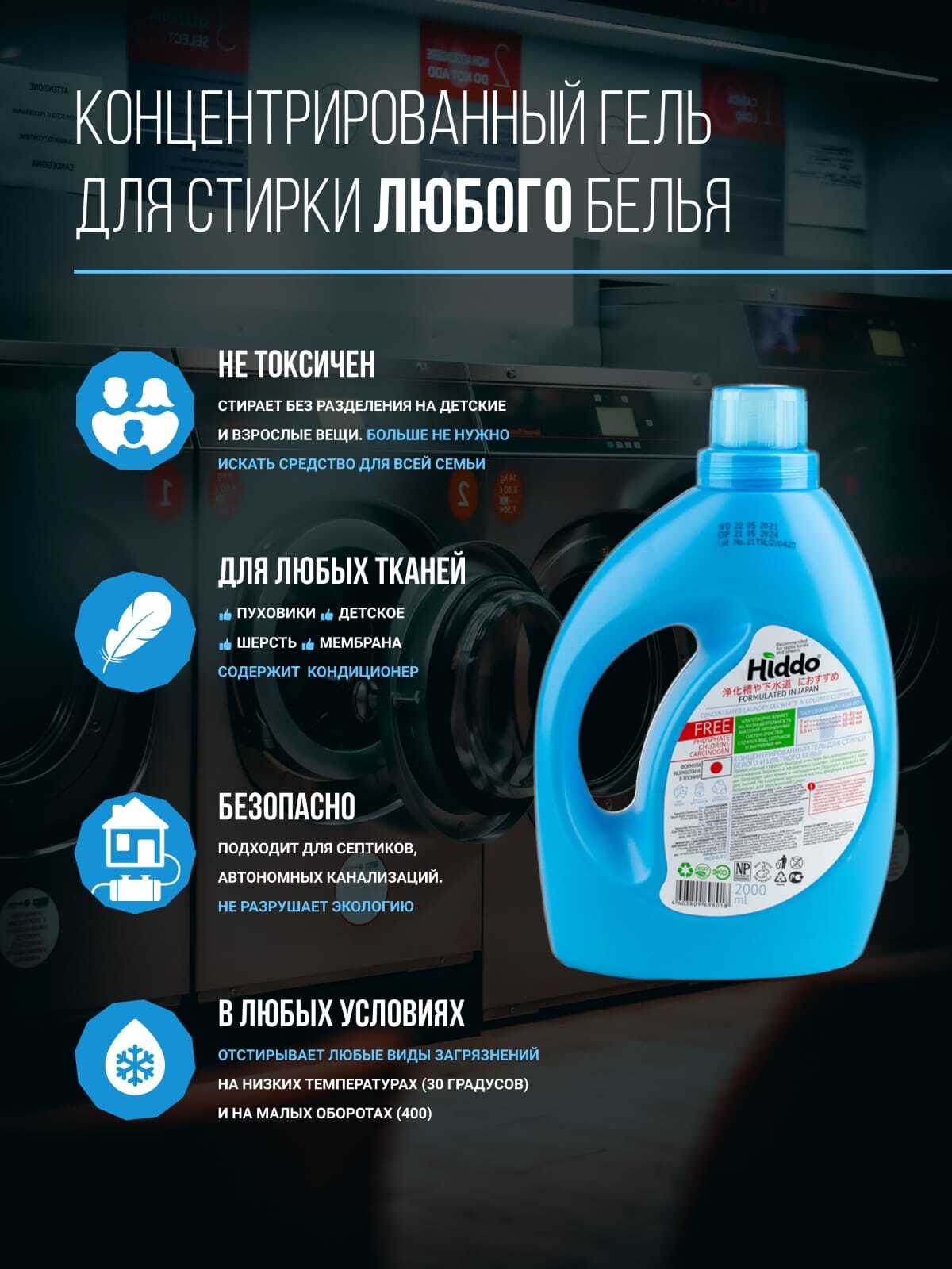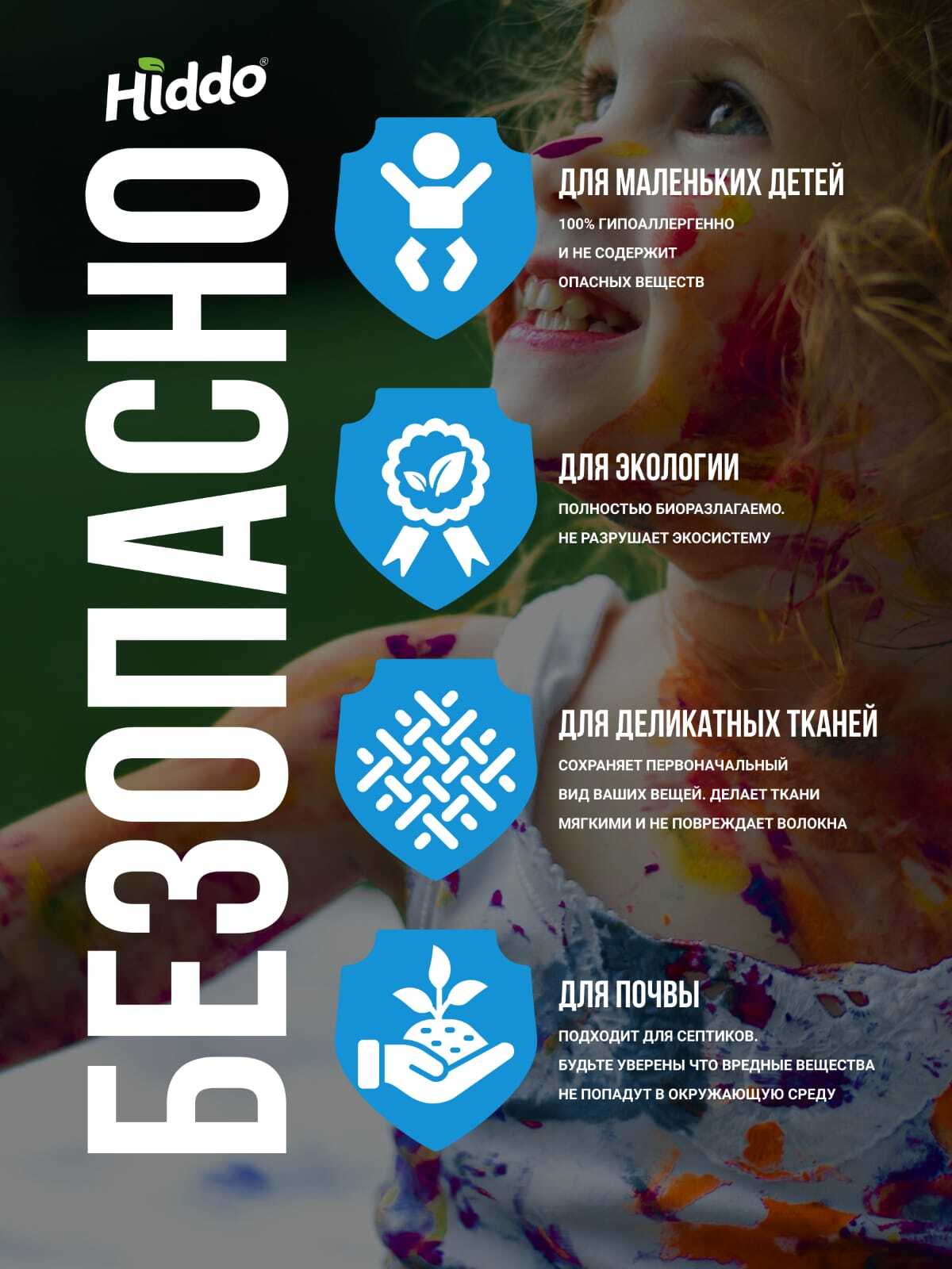 Концентрированный гель для стирки белья Hiddo "Горная свежесть" предназначен для использования в автоматических машинах любого типа и ручной стирки. Гипоаллергенное средство для стирки жидкое подходит для белых и цветных вещей из разных видов тканей: мемб