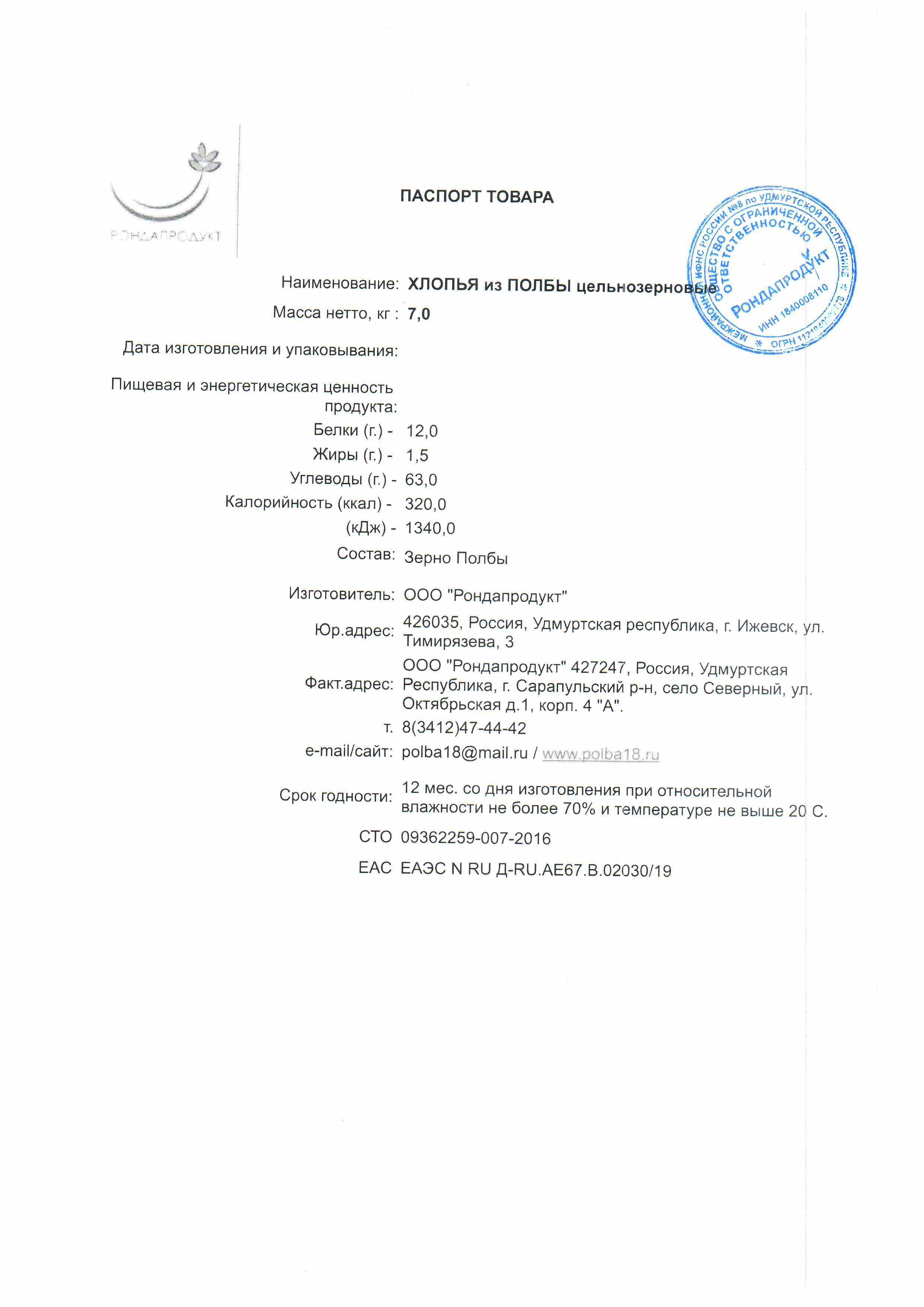 Условия хранения:Относительная влажность не более 70% и температура не выше 20 CСостав:Зерно полбыКомплектация:Хлопья из полбы в картонной коробкеОписание:Большая упаковка хлопьев быстрого приготовления из полбы создана специально для покупателей из сегме