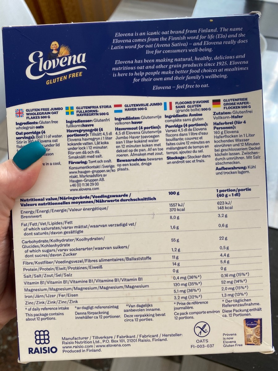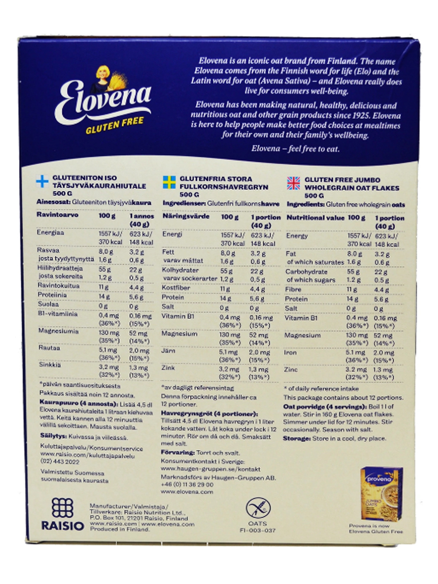 Условия хранения:В сухом прохладном местеСостав:хлопья овсяныеОписание:КРУПНЫЕ ОВСЯНЫЕ ХЛОПЬЯ ELOVENA БЕЗ ГЛЮТЕНА - товар из Финляндии. Безглютеновые цельнозерновые овсяные хлопья для приготовления овсяной каши и выпечки. 100% безглютеновый продукт, изгот