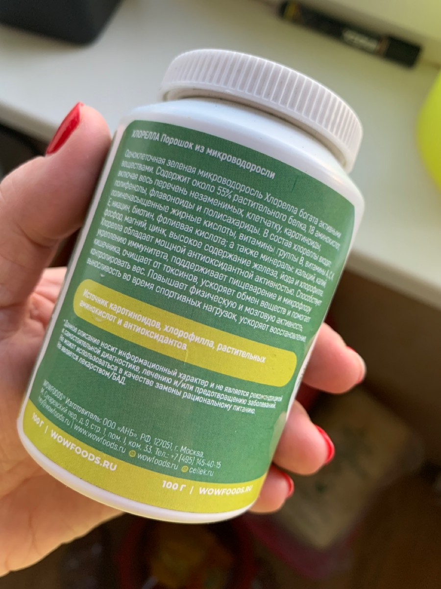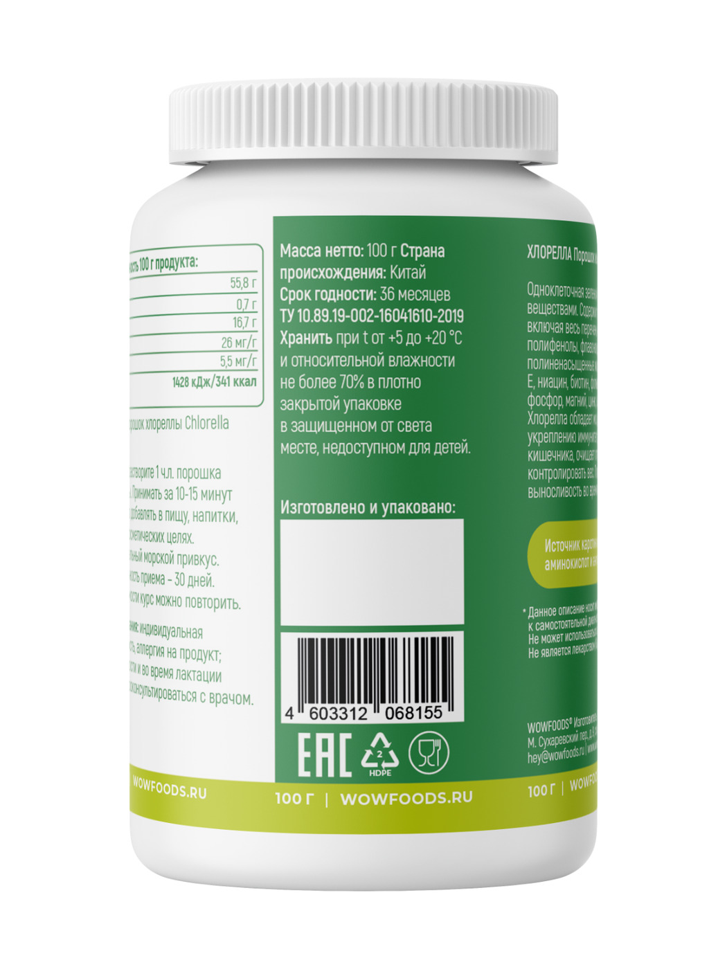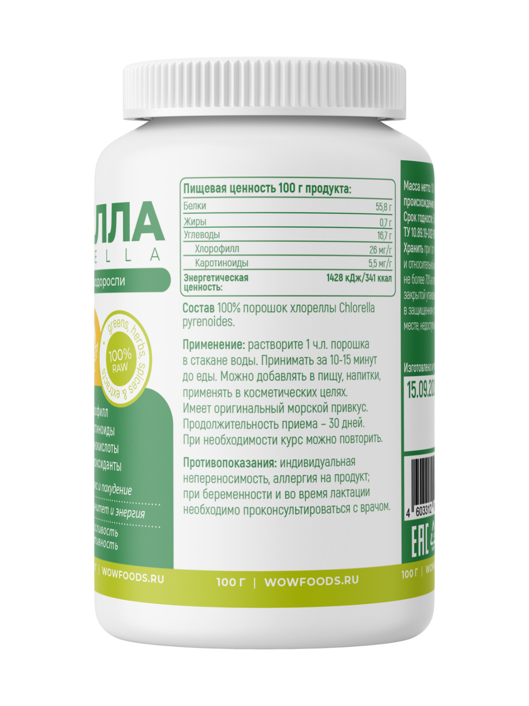 Условия хранения:Хранить при t от +5 до +20 °C и относительной влажности не более 70% в плотно закрытой упаковке в защищенном от света месте, недоступном для детей.Состав:100% порошок хлореллы Chlorella pyrenoidesОписание:Одноклеточная зеленая микроводоро