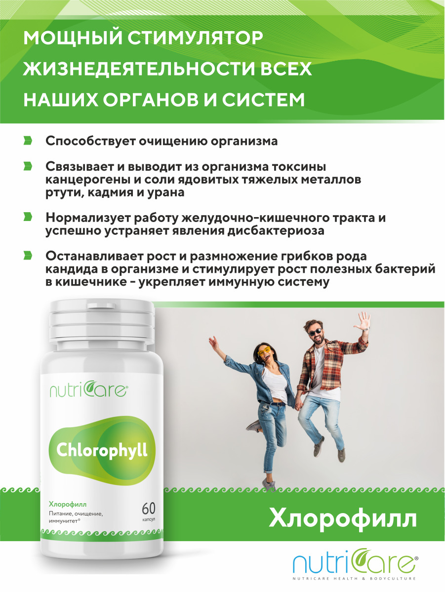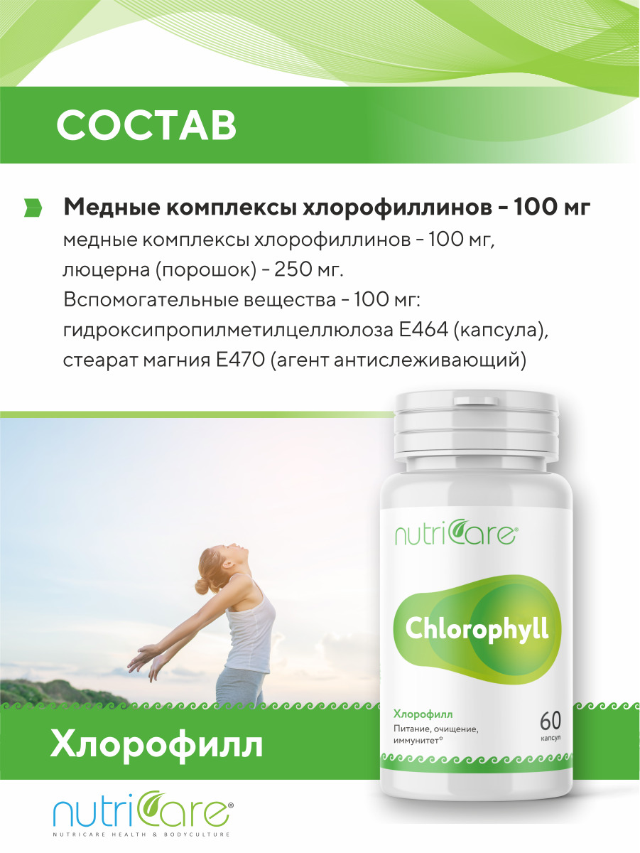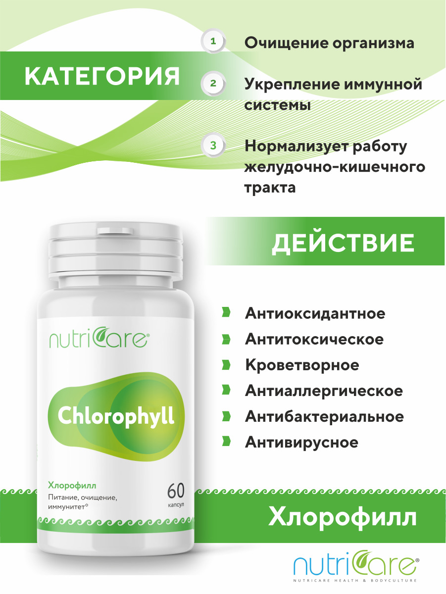 МНН/Действующее вещество:Хлорофилл, люцернаСостав:Хлорофилл, Люцерна, Стериат натрия, ГидроксипропилметилцеллюлозаОписание:Хлорофилл способствует очищению организма, он связывает и выводит из организма токсины, канцерогены и соли ядовитых тяжелых металлов