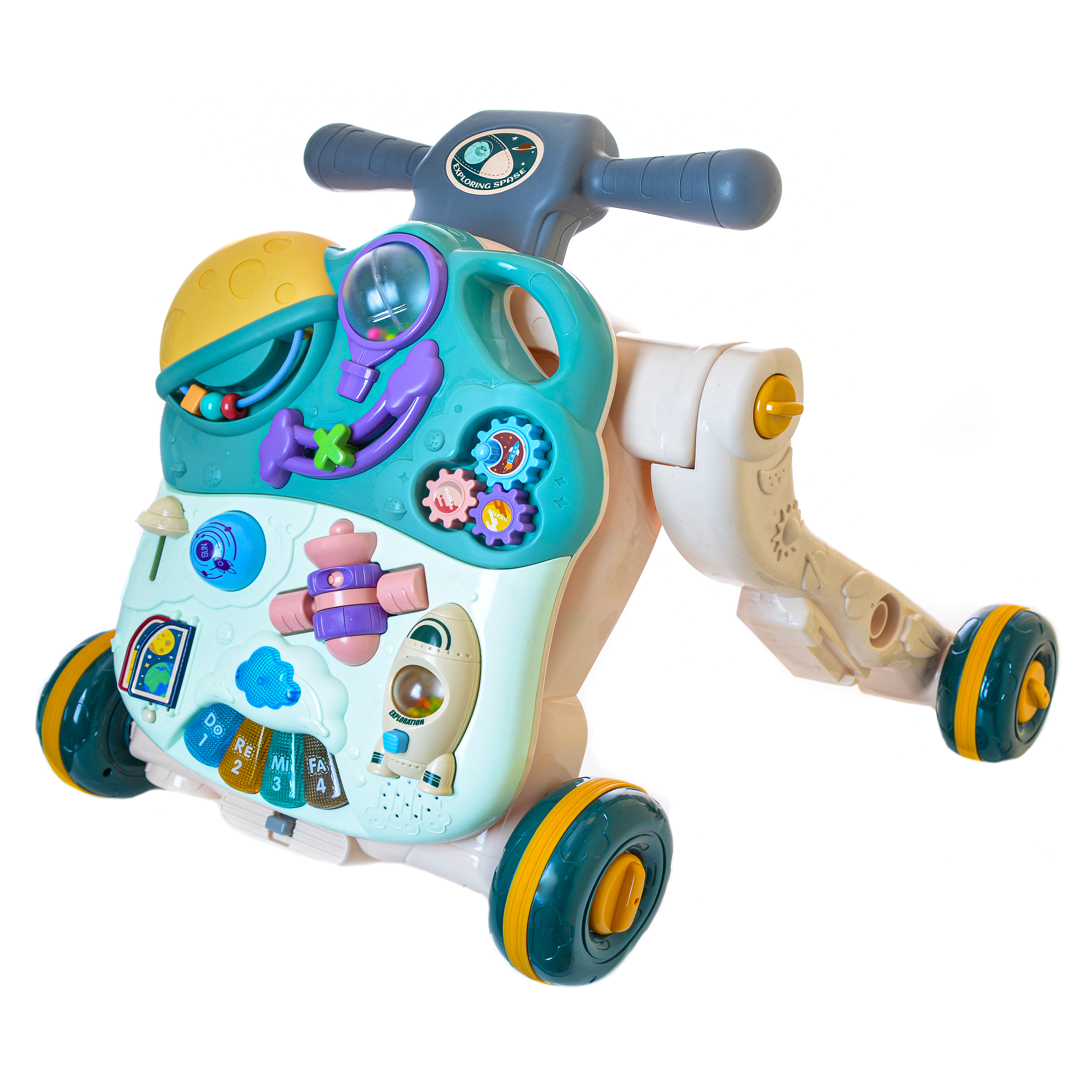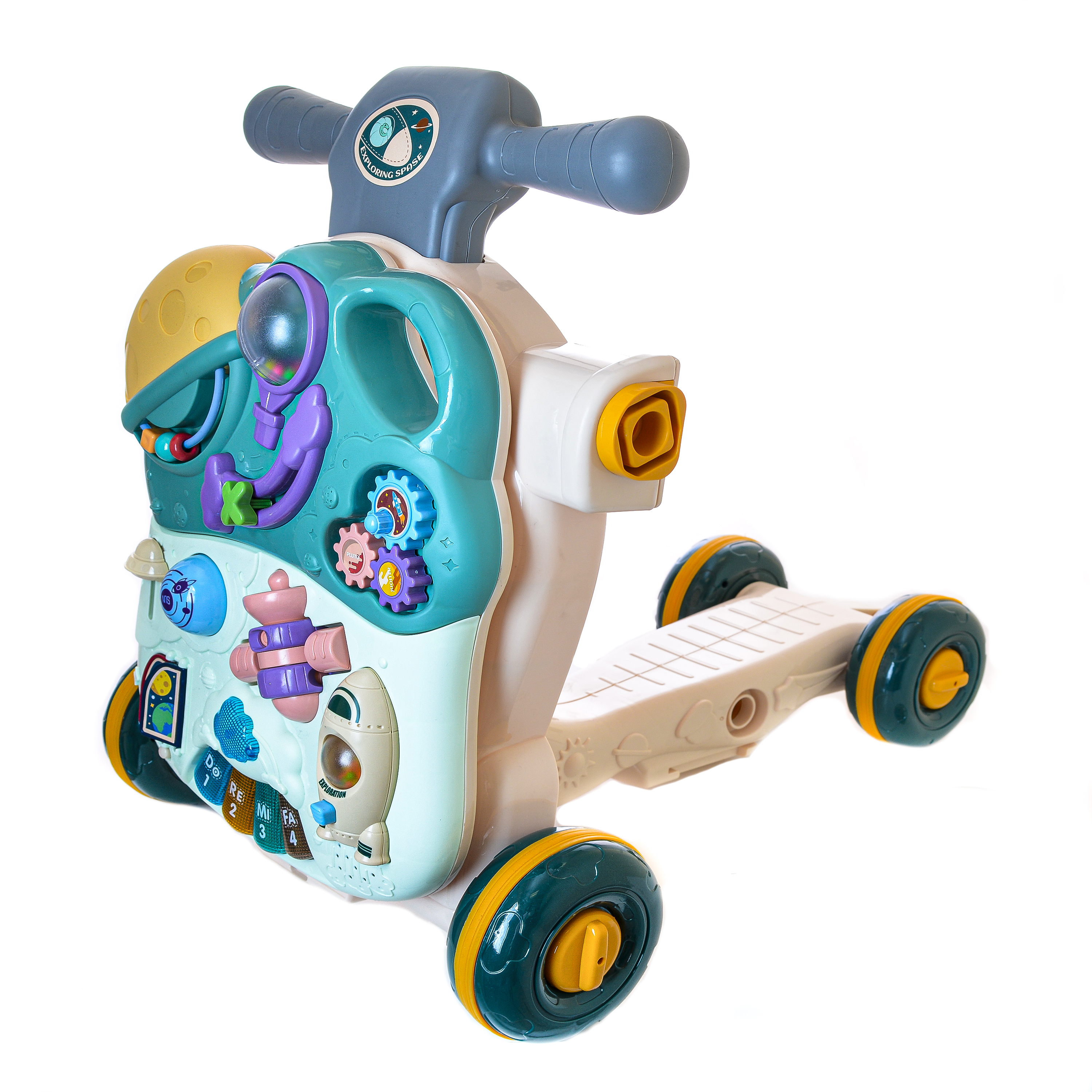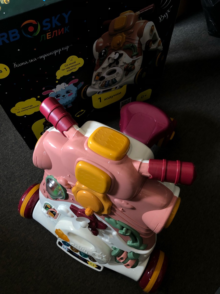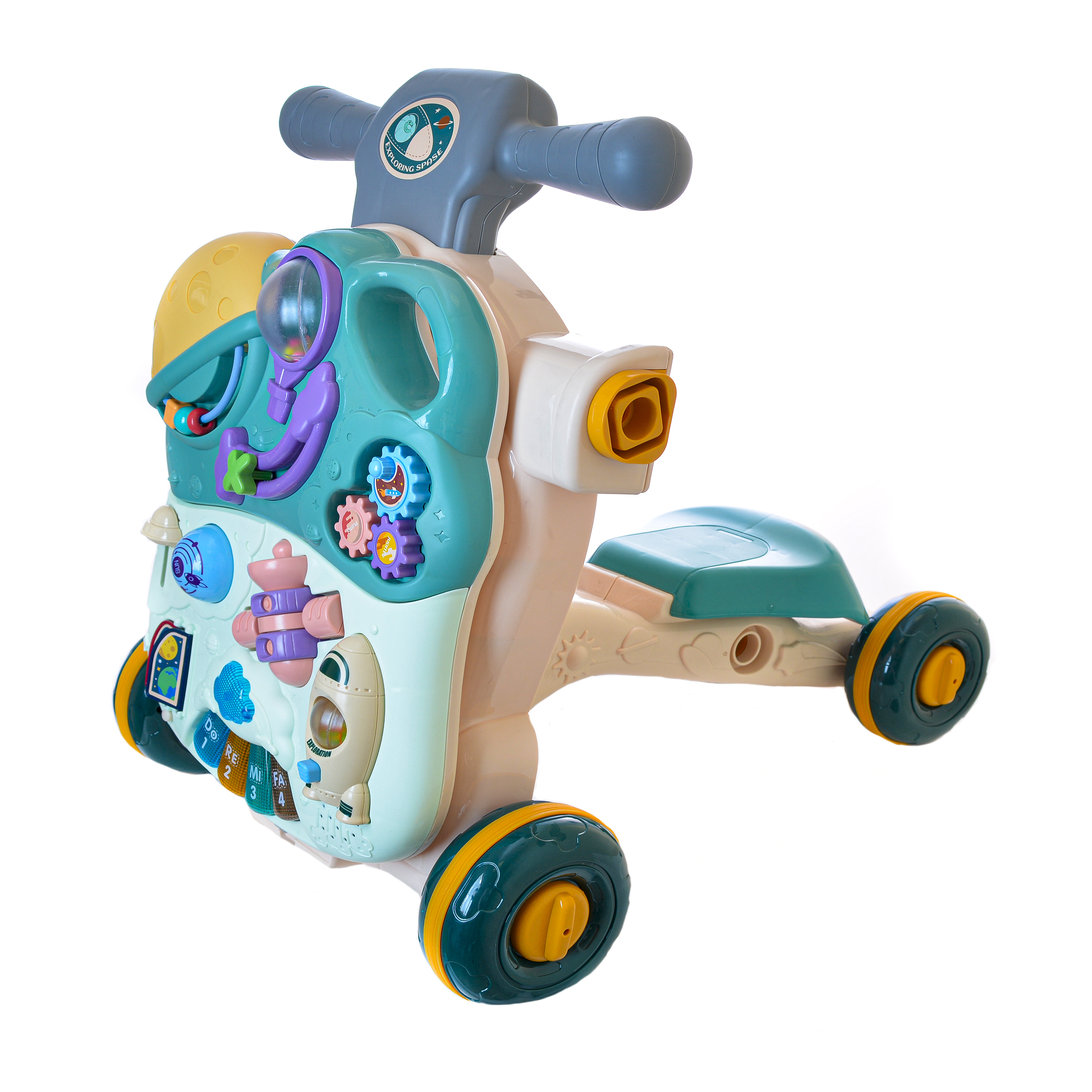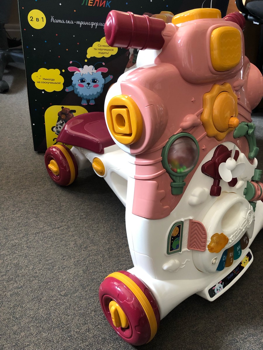 Ходунки-каталка Turbosky Лёлик 4 в 1 поможет ребенку встать на ножки и сделать первые уверенные шаги. Ребенок может за ручку толкая каталку перед собой, также может и сидеть, толкая каталку ножками.Ходунки детские снабжены электронной панелью со звуковыми