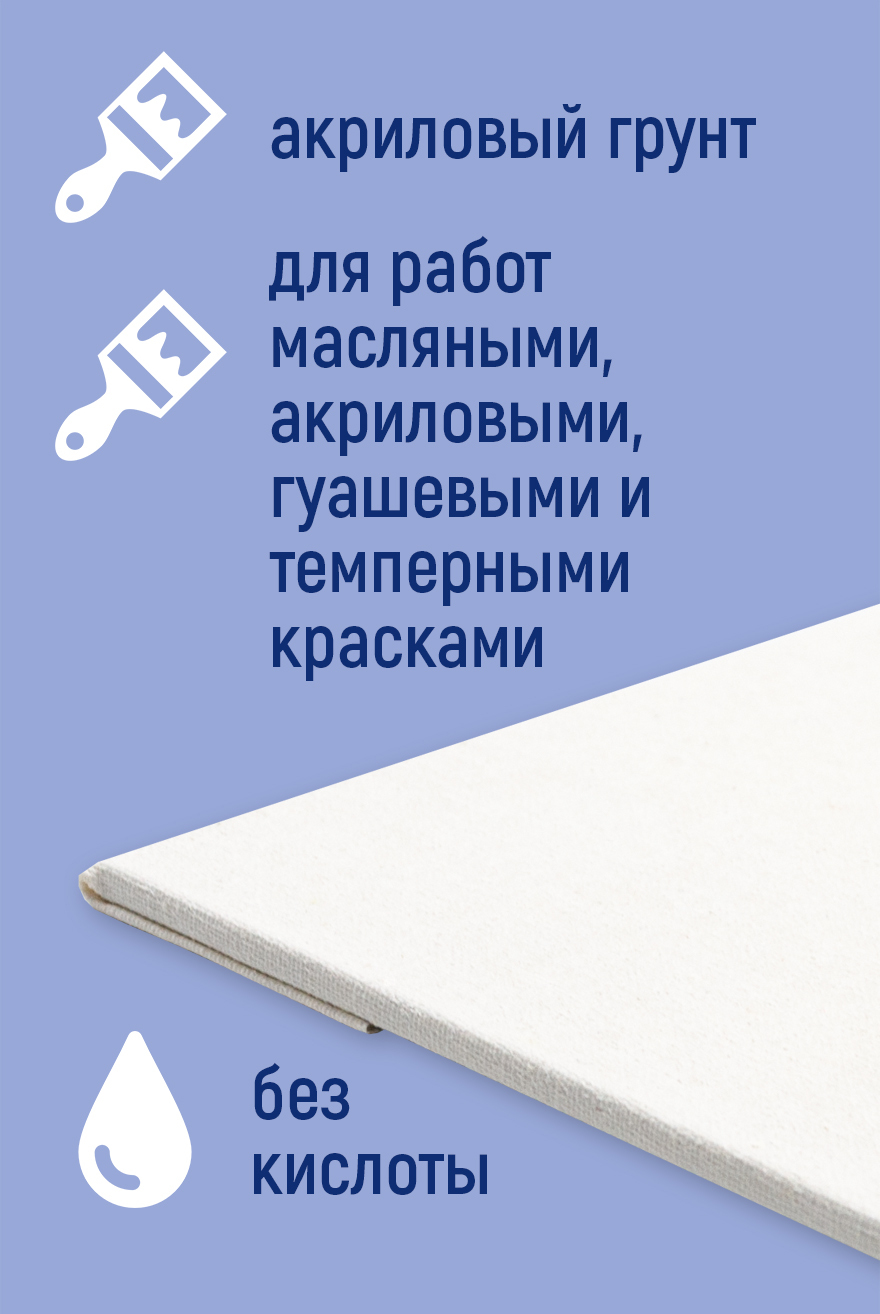 Художественный холст для рисования создан на бескислотной основе из 100%-ного хлопка —одного из самого распространенного материала, который пользуется большим спросом за счет своей функциональности и удобства. Имеет 3 слоя проклейки и 2 слоя акрилового гр