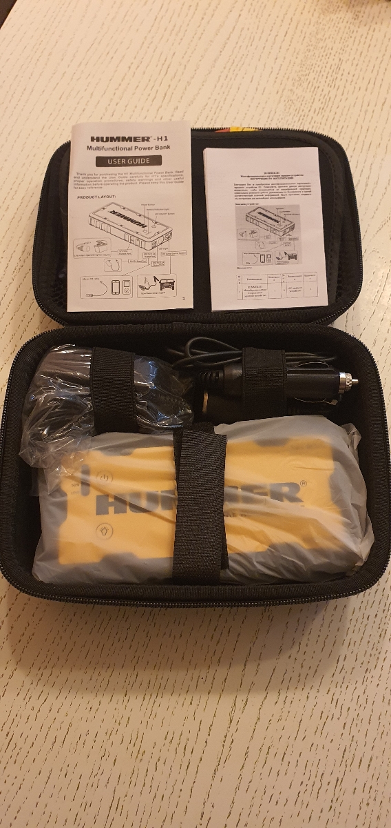 Комплектация:★ Многофункциональный портативный источник питания★ Интеллектуальные искробезопасные клеммы для запуска автомобиля★ Микро-USB зарядный кабель★ Переходник прикуривателя★ Блок питания от сети 220V★ Автомобильное зарядное устройство★ Инструкция