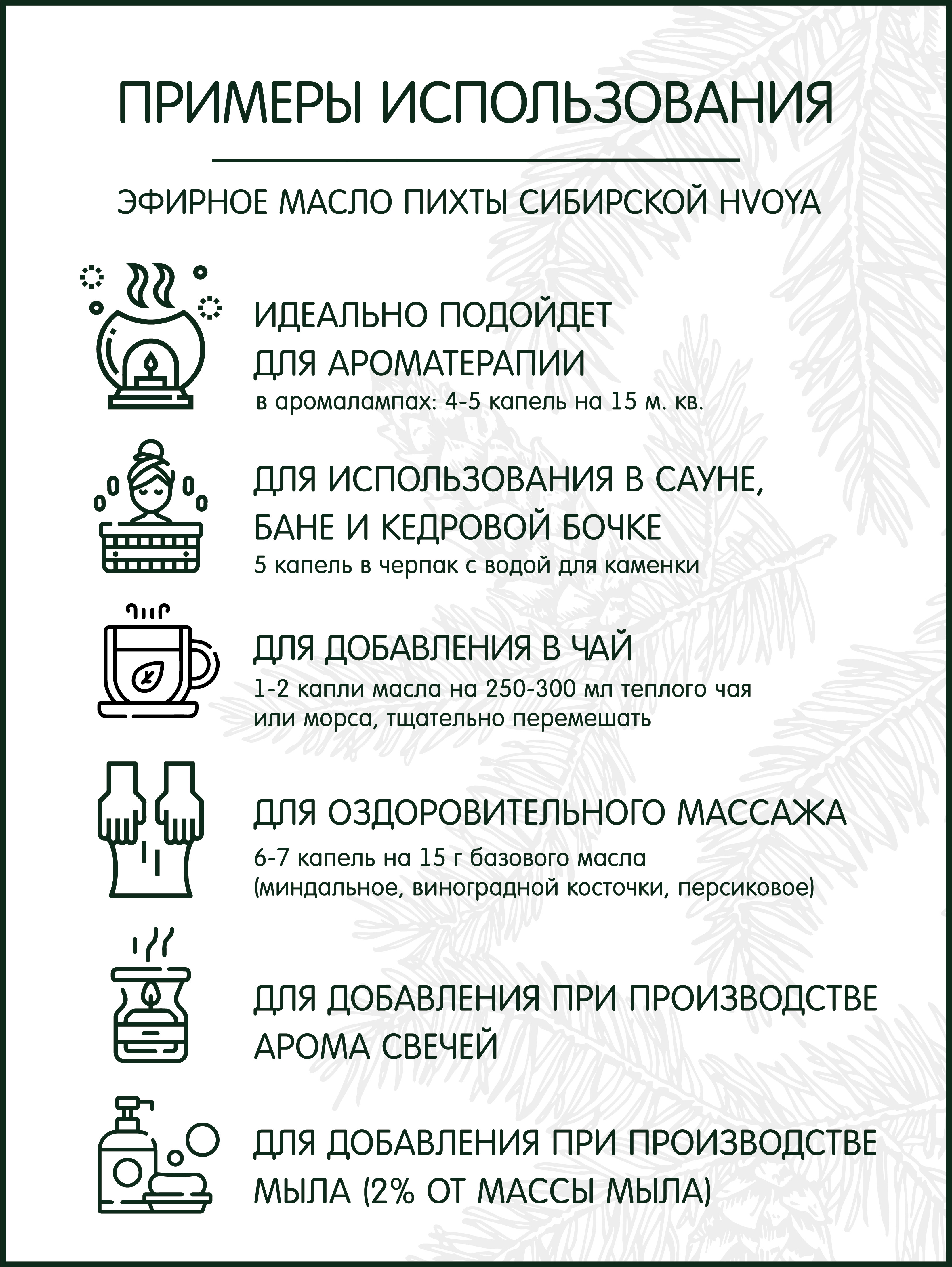 Способ примененияВ аромалампах: 4-5 капель на 15 м. кв. Для массажа: 6-7 капель на 15 г базового масла (миндальное, виноградной косточки , персиковое) Для ванн: 2-6 капель на носитель (соль, сливки) Для бани, сауны: 5 капель в черпак с водой для каменки Для обогащения кос