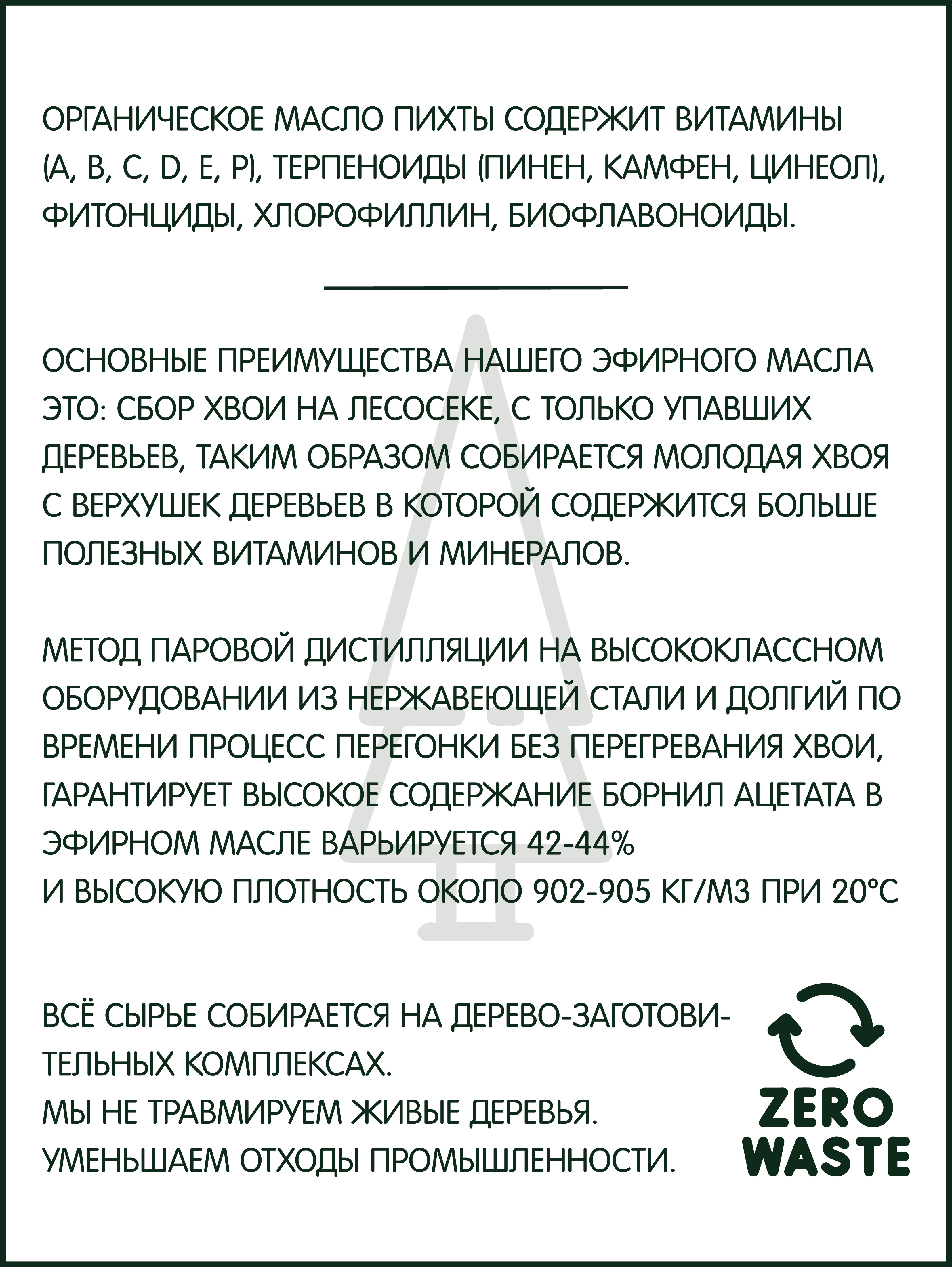 Состав:ABIES SIBIRICA ESSENTIAL OIL (эфирное масло пихты сибирский)Описание:Органическое эфирное масло пихты Сибирской.Масло высшего сорта, содержание борнил ацетата не менее 40%.Произведено технологией паровой дистилляции молодых побегов хвои, собранных