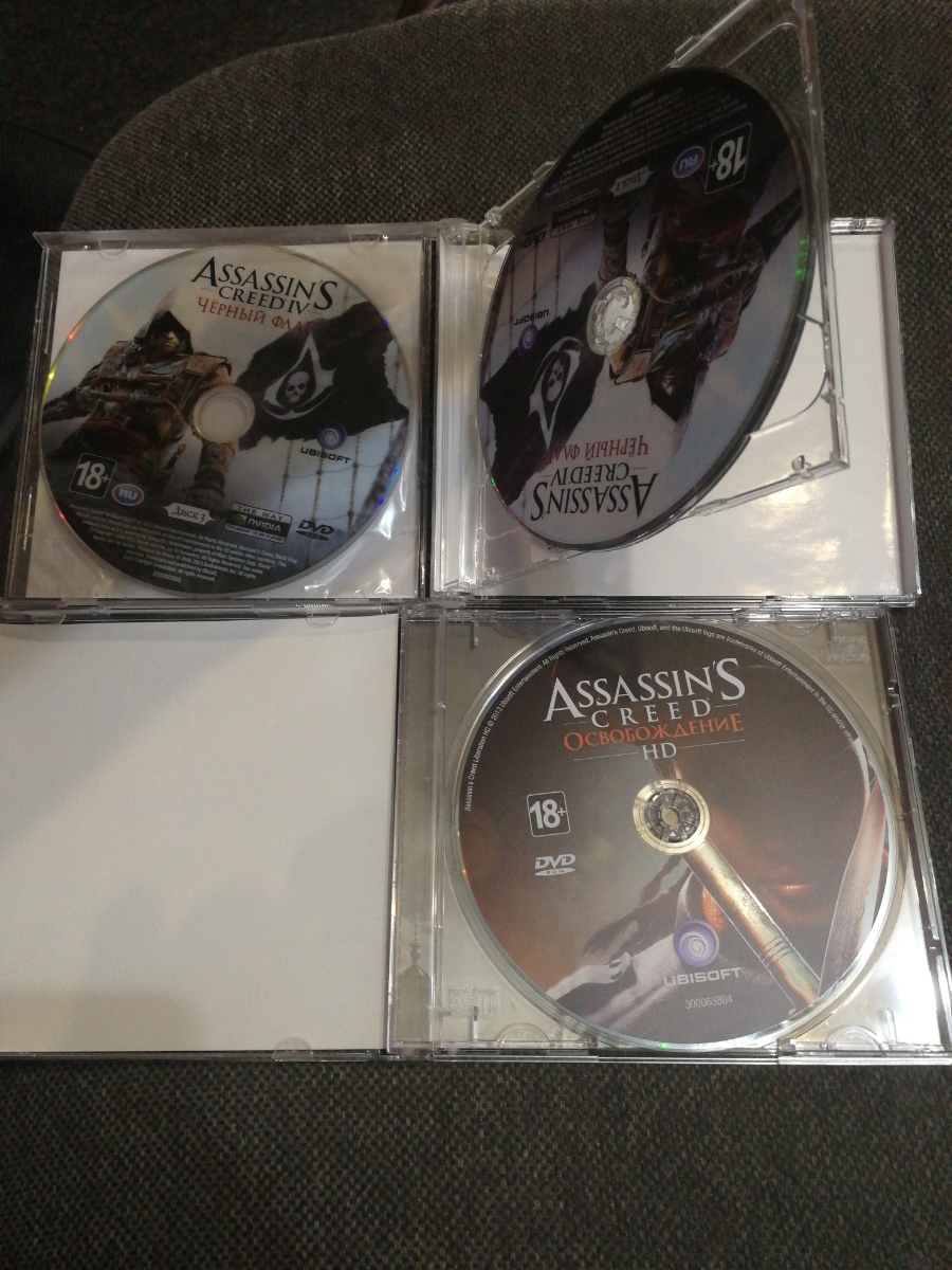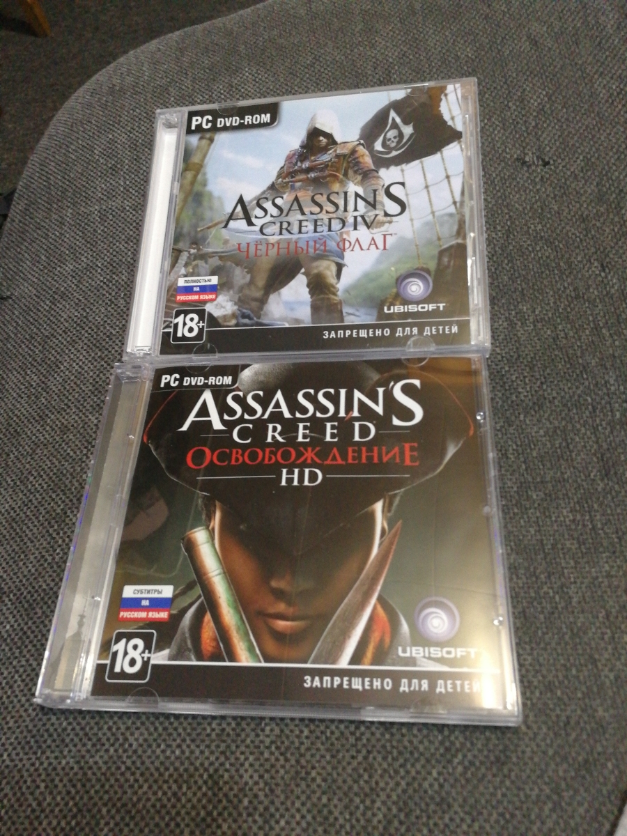 Комплект включает в себя два диска:Assassin's Creed IV Чёрный флаг (Русская версия) JewelAssassin's Creed Освобождение HD (Русские субтитры) Jewel