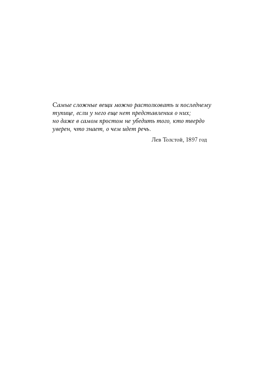 Цитата "Самые сложные вещи можно растолковать и последнему тупице, если у него еще нет представления о них; но даже в самом простом не убедить того, кто твердо уверен, что знает, о чем идет речь." Лев Толстой, 1897 год "Восстания американской молодежи п