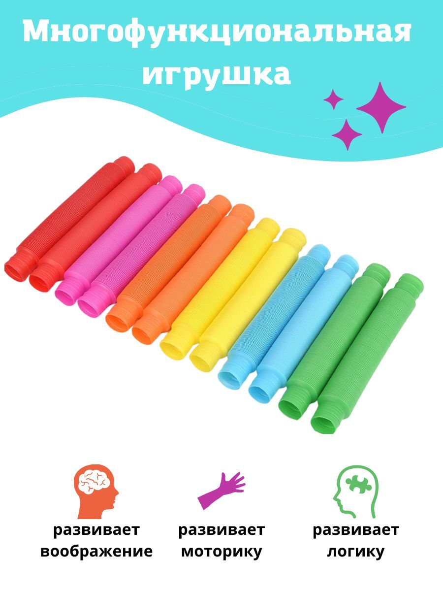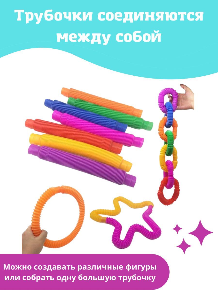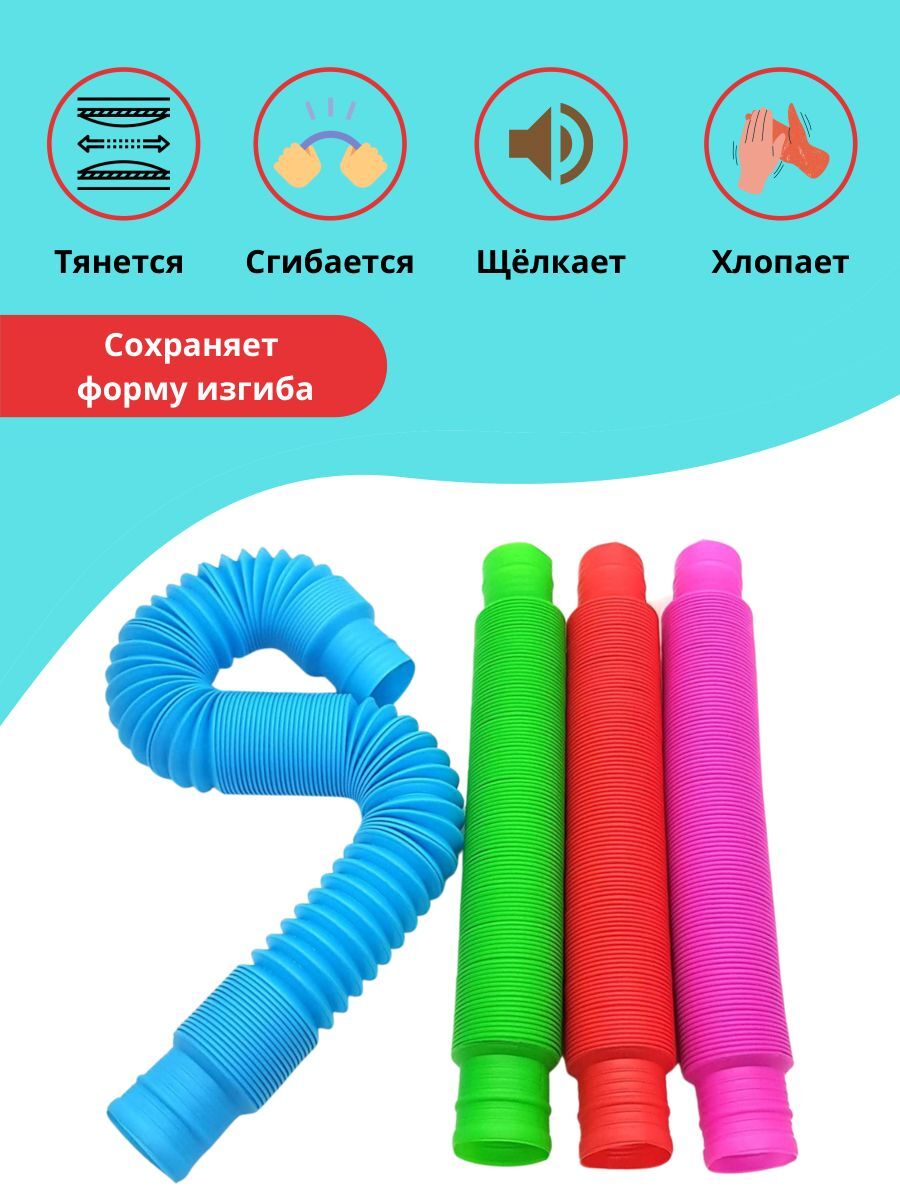 Новая трендовая игрушка-антистресс для детей и взрослых Pop Tubes (поп-туб игрушка, поп-тюбс, поп-трубочки). Гибкая трубка-гофра тянется, сгибается, щелкает и хлопает! Сохраняет форму изгиба.Поп-туб игрушки соединяются между собой таким образом, что можно