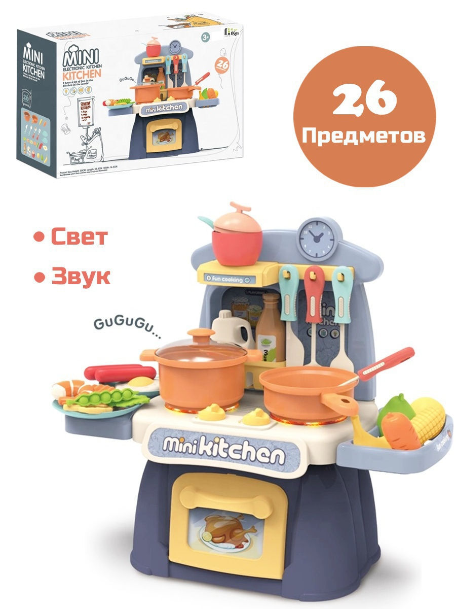 Игровой набор Мини Кухня - это компактная кухня с полочками и аксессуарами (26 эл).Комплектность: кухня - 1 шт.,кухонные принадлежности и продукты - 26 шт.