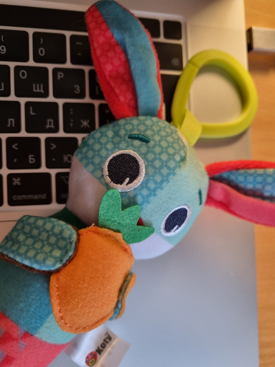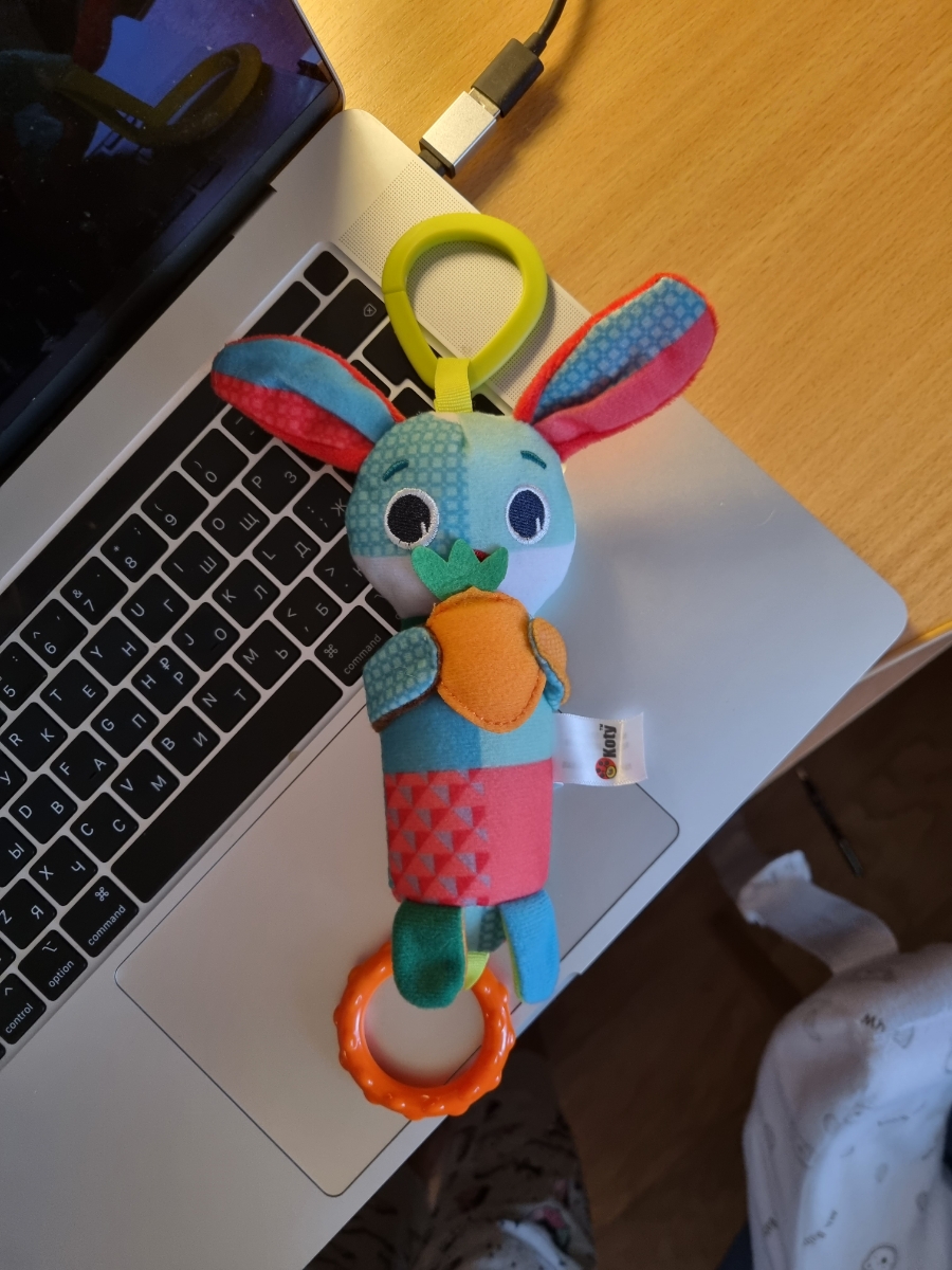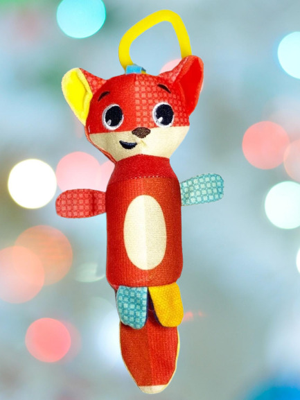 Развивающая игрушка подвеска. Сочетание разных видов ткани на игрушке используются для развития тактильных ощущений малыша. При помощи специального колечка игрушку можно подвесить к бортику кроватки, к коляске или к детскому креслу. Фактурное, ребристое к