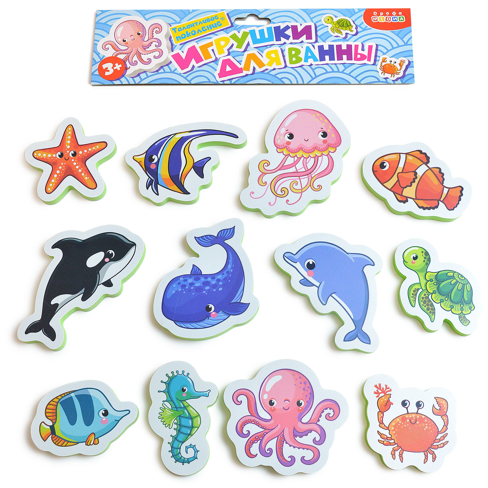 Комплектация:В наборе — 12 фигурок в рамкеОписание:Перед вами набор игрушек для ванны, с которым можно купаться, а ещё использовать как рамку с вкладышами. Он изготовлен из мягкого пластика ЭВА. Лёгкие, приятные на ощупь игрушки безопасны для детей. Благо