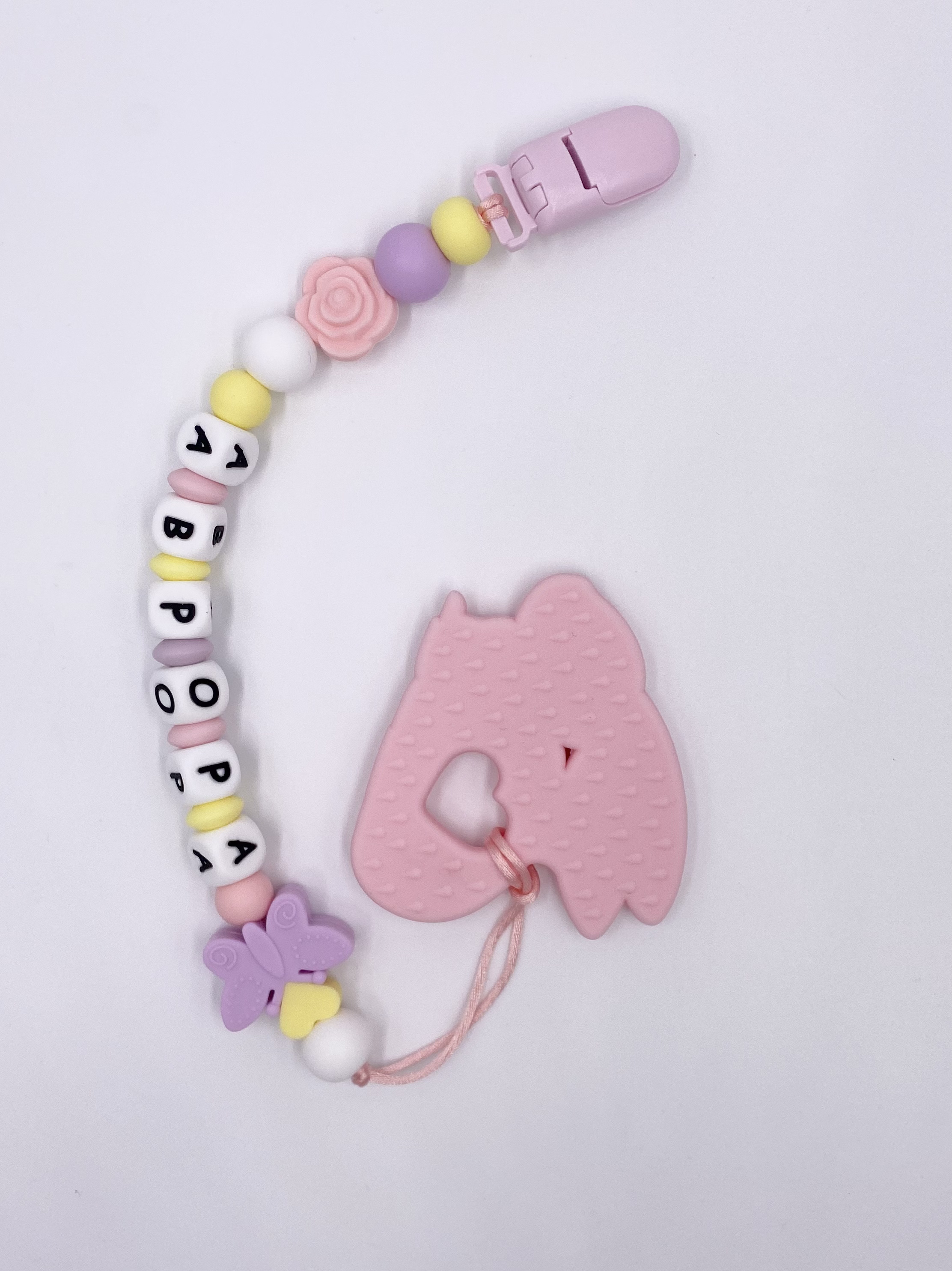 Комплектация:Держатель для пустышки, прорезывательОписание:Держатель для пустышки с прорезывателем будет отличным помощником в непростой период для малыша и мамы! А также останется памятной вещью на долгие годы!Пищевой силикон нежный и приятный на ощупь,