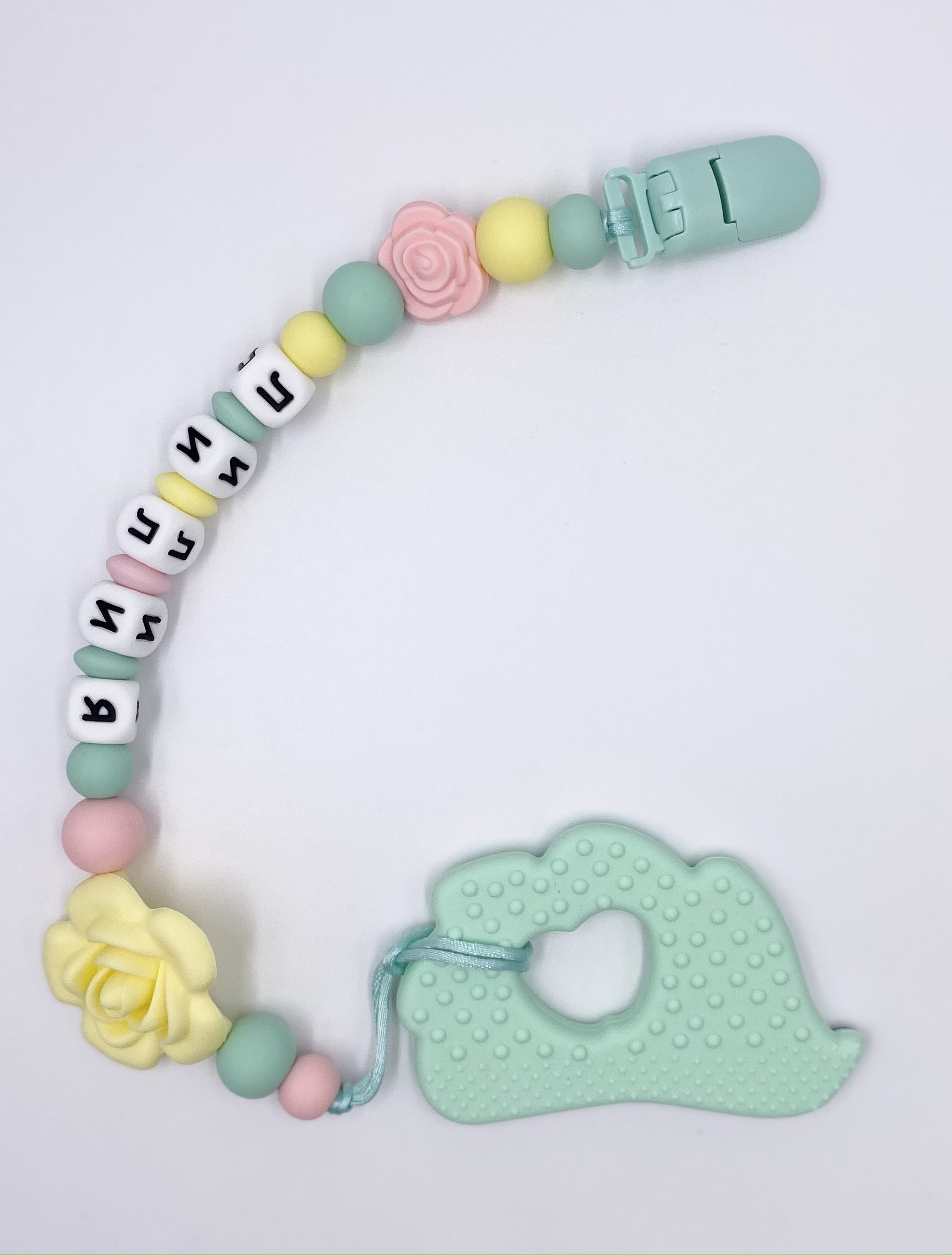 Держатель для пустышки с прорезывателем будет отличным помощником в непростой период для малыша и мамы! А также останется памятной вещью на долгие годы! Пищевой силикон нежный и приятный на ощупь, различные формы бусин будут не только нежно массировать де