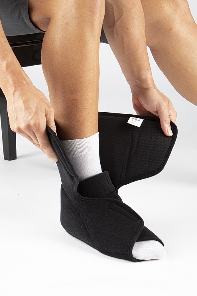 EST-088 ортез Действие:• Иммобилизация и стабилизация стопы и голеностопного сустава Основные преимущества:• Фиксация и регулировка по ноге осуществляется с помощью трех ремней с застежками-липучками.• Высота ортеза 27 см.• Вес от 1100 гр. до 1510 гр. в з