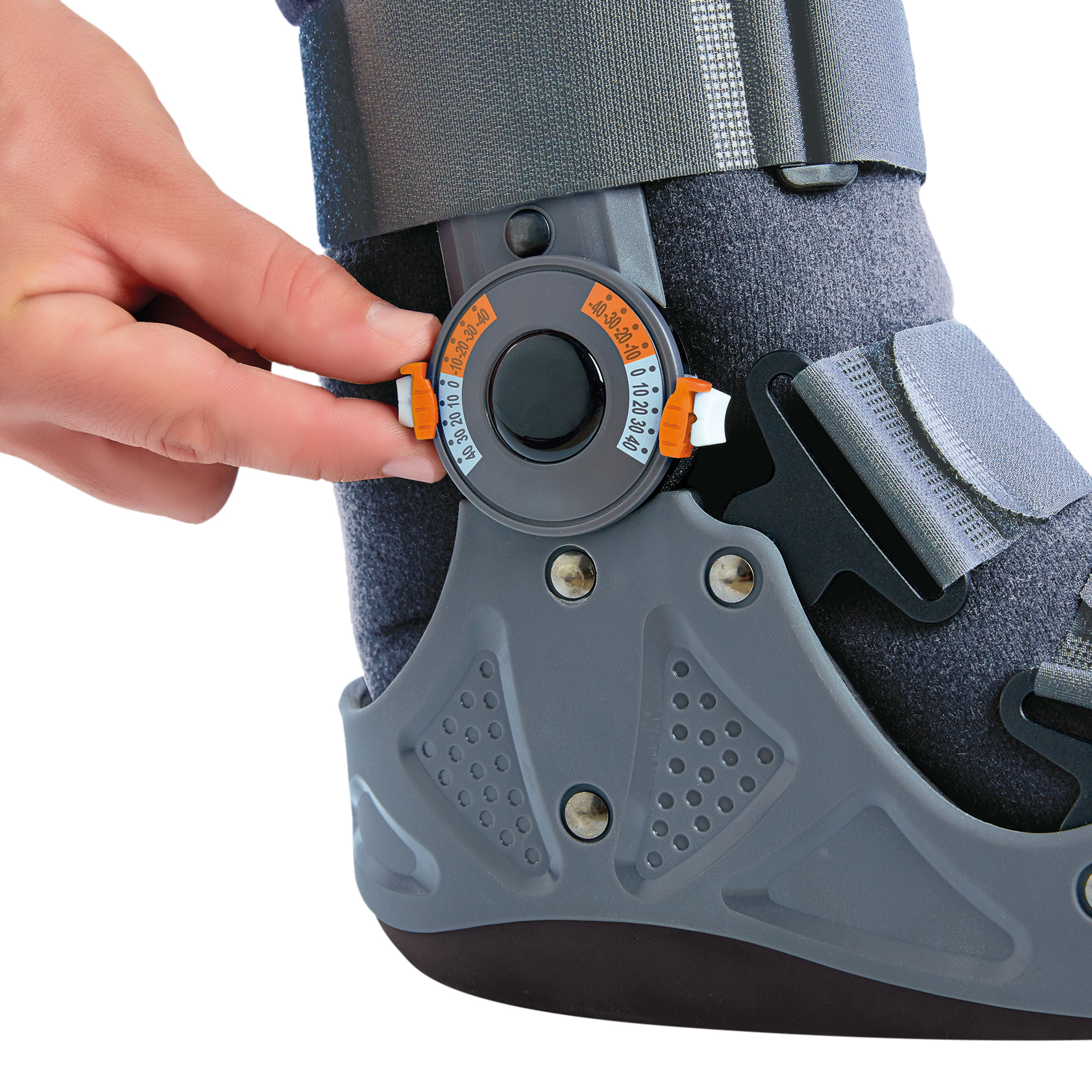 EST-086 Действие:• Иммобилизация и стабилизация стопы и голеностопного сустава и регулировка диапазона движений в голеностопном суставе.Основные преимущеста:• Благодаря наличию шарнира можно установить угол сгибания- разгибания в голеностопном суставе в д