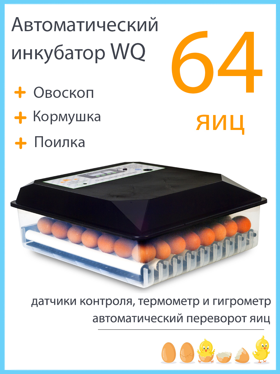 Инкубатор автоматический на 64 яйца имеет универсальный роликовый механизм переворота, состоит из роликов 9 штук, расстояние между которыми 1,7см. Таким образом, подойдет для инкубации ВСЕХ типов яиц, размер которых больше 1,7 см. Идеально создает искусст