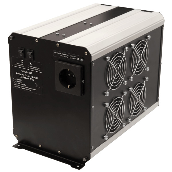 Инвертор СибВольт 3012 (преобразователь напряжения) преобразует постоянное напряжение аккумулятора 12 В в переменное синусоидальное напряжение 220 В и частотой 50 Гц. Качественные характеристики такого напряжения аналогичны характеристикам напряжения в бы