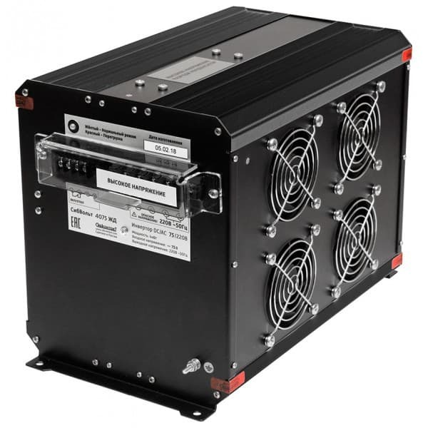 Инвертор СибВольт 4075 ЖД (преобразователь напряжения) предназначен для работы на подвижном составе железнодорожного транспорта и преобразования напряжения источника постоянного тока - аккумулятора с номинальным значением напряжения 75 В в переменное сину