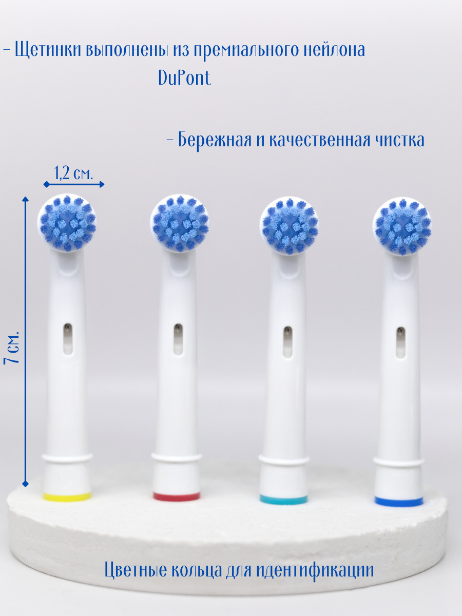 Комплектация:насадки для зубной щетки совместимые с ORAL-B -4 шт.Описание:Хотите профессионально ухаживать за своими зубами в домашних условиях, вам помогут наши сменные насадки для зубной щетки, они имеют мягкую щетину DuPont которая способна превосходно
