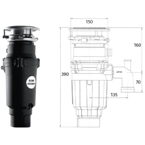 Комплектация:Кнопка пневматического включения, отводное колено, фланец, брызгозагородитель, проталкивательОписание:Модель Bone Crusher bc 910 SLIM LINE перерабатывает пищевые отходы в любом количестве — справляется с задачами даже при банкетных приемах.