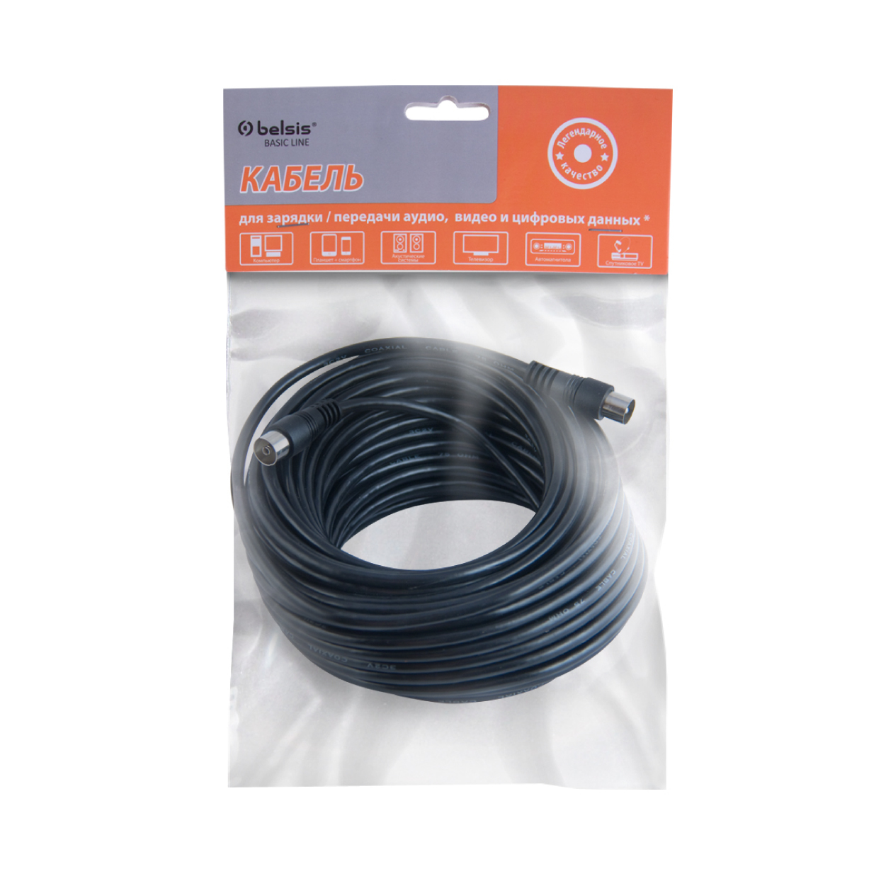 Комплектация:Кабель антенный Belsis ТВ вилка <--> ТВ розетка, антенный, длина 15 м., чёрный, SP3075