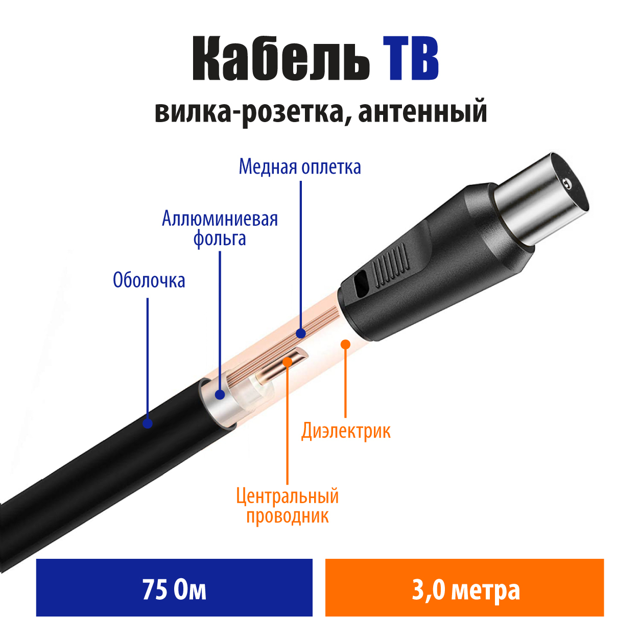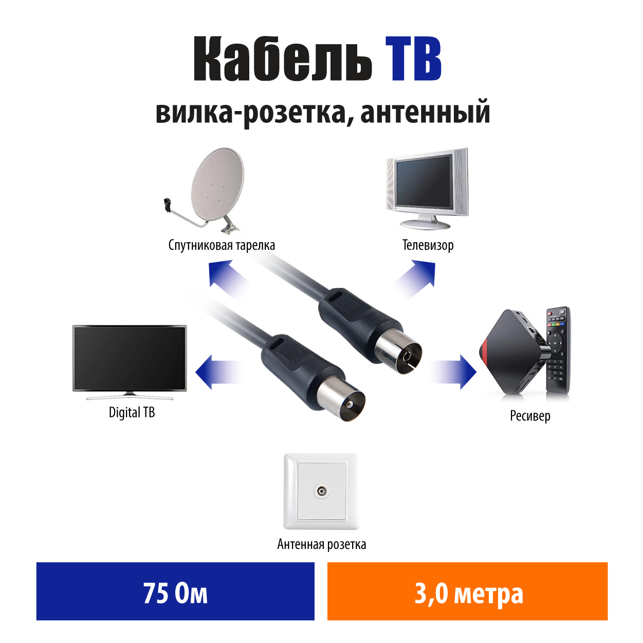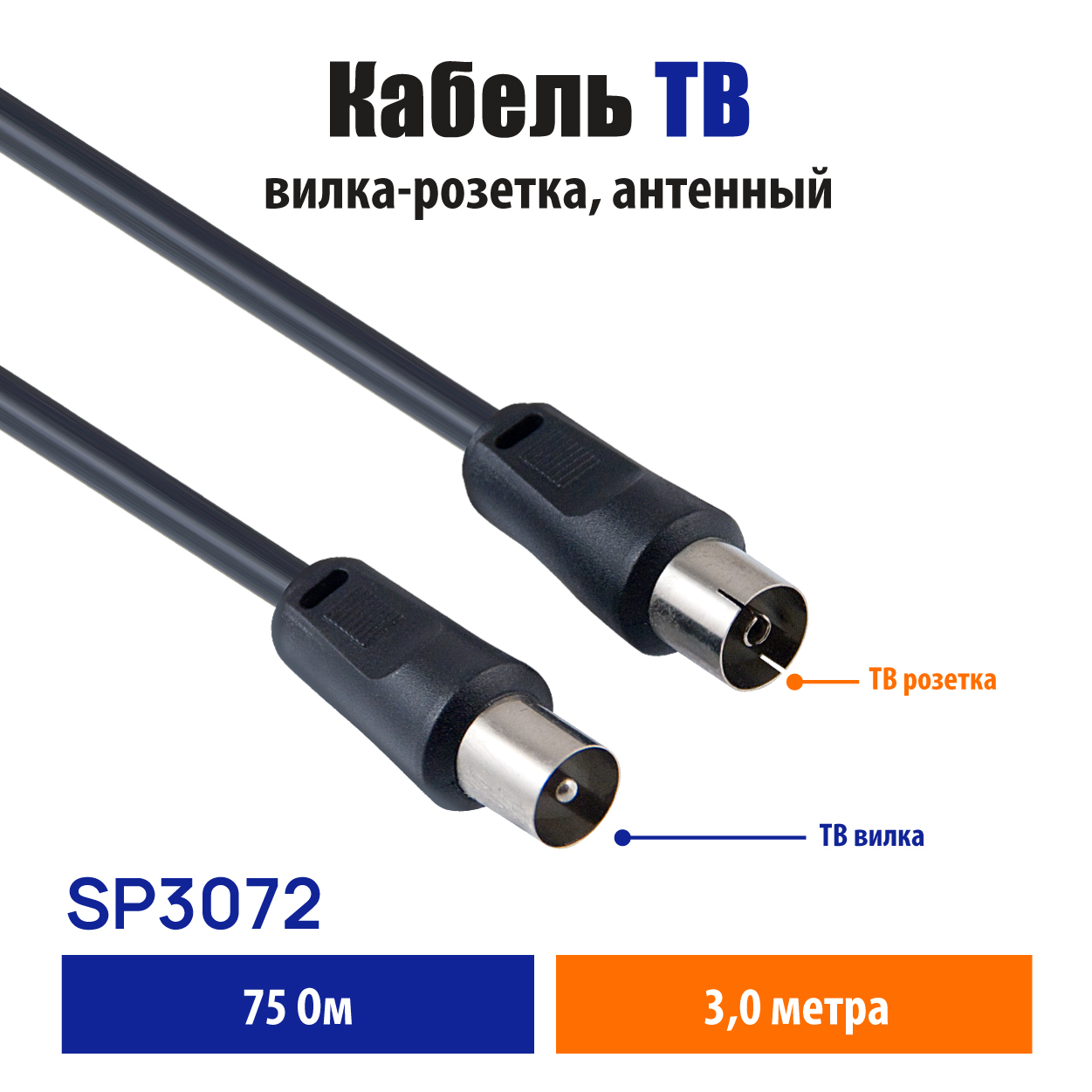 Комплектация:Кабель антенный Belsis ТВ вилка <--> ТВ розетка, антенный, длина 3 м., чёрный, SP3072
