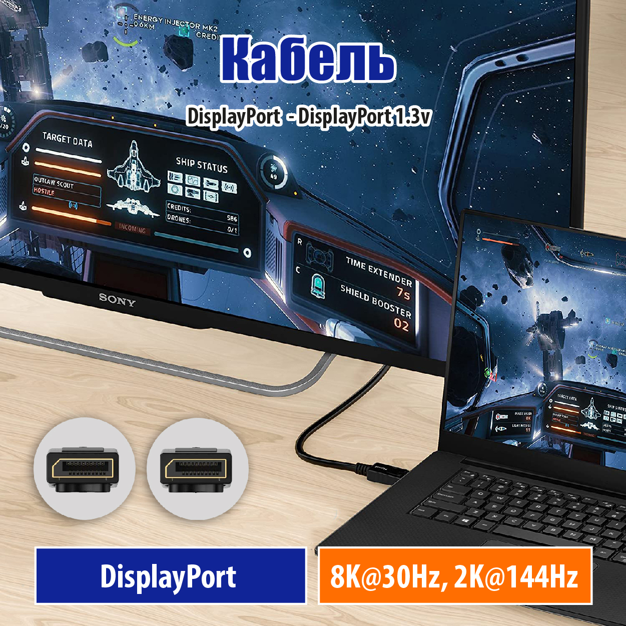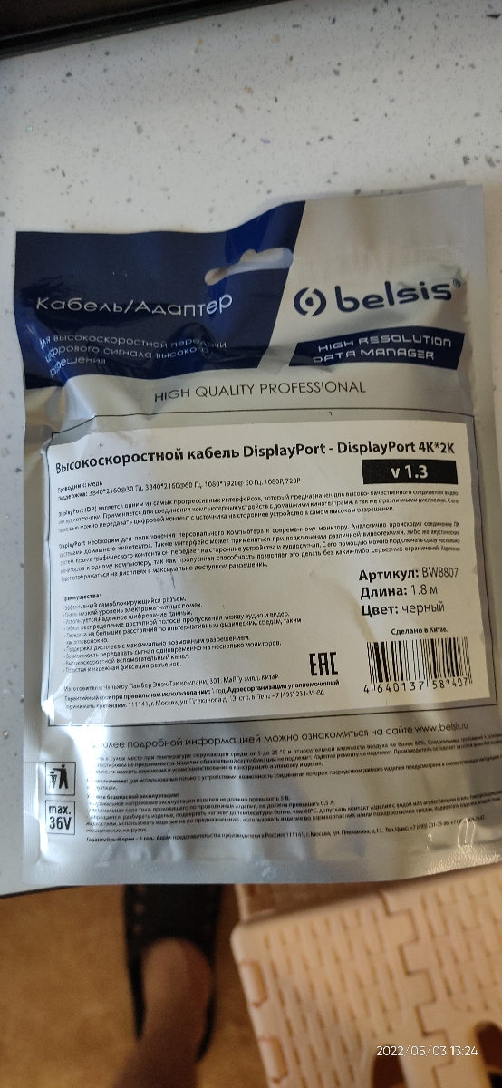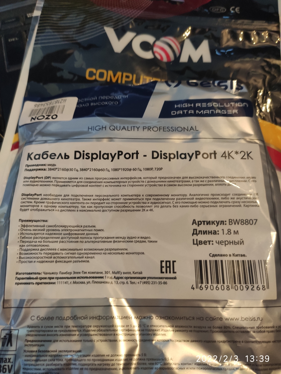 Комплектация:Кабель DisplayPort 1.3/Belsis/ Кабель DP-DP/ длина 1.8 м/8K@30 Гц/5K@60 Гц/4K@120 Гц/ 2K@144 Гц/ 2K @165 Гц/1080P 240 Гц /Высокоскоростной кабель DisplayPort 1.3 совместим с 3D, Ноутбуком, ПК, Игровым монитором/BW8807Описание: DisplayP