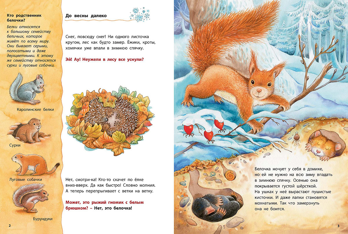 Перед вами красочные познавательные истории о жизни лесных белочек. Как называется белкино гнездо? Чем белка занята долгой зимой? Как она готовит припасы? Как воспитывает бельчат? С кем дружит, кого опасается? На такие и множество других вопросов маленько