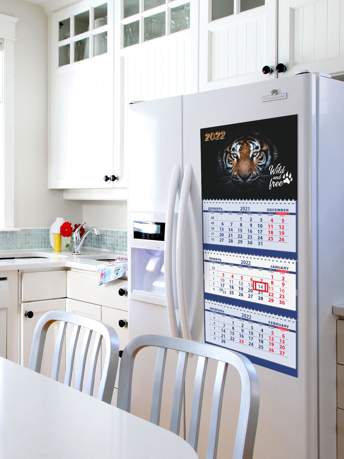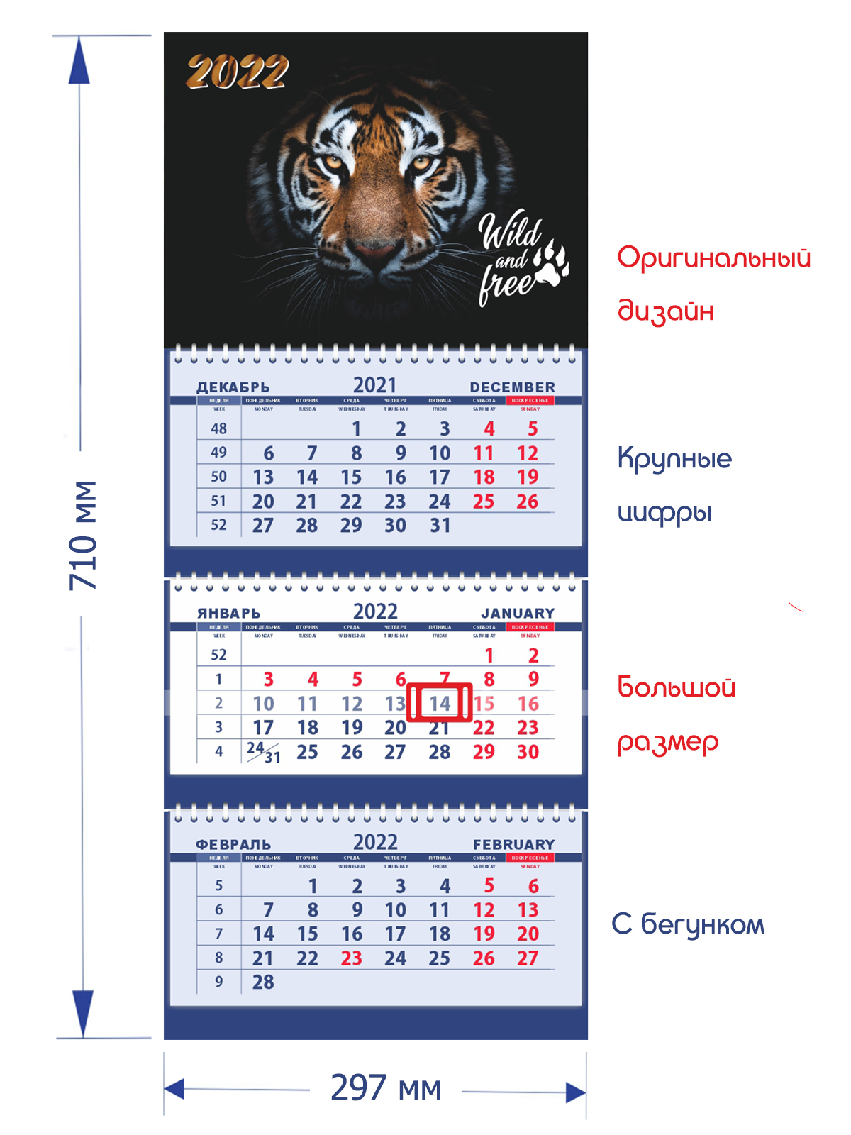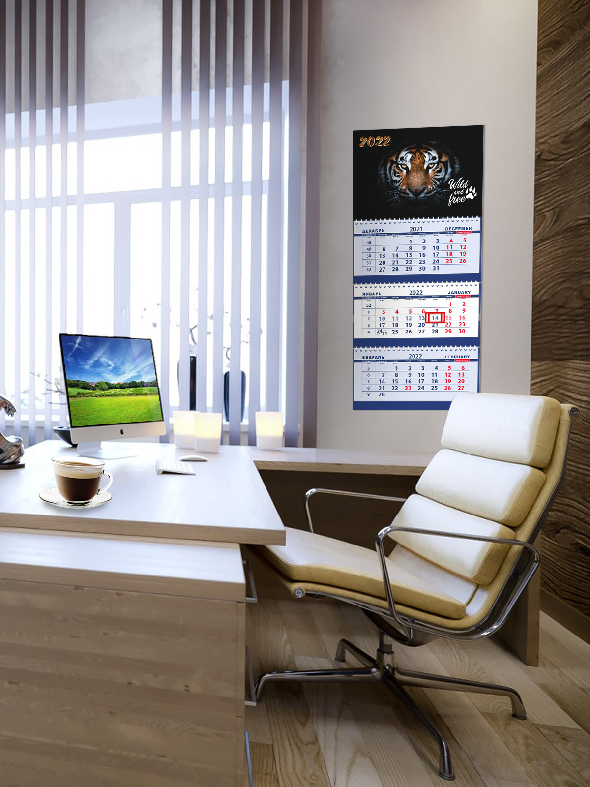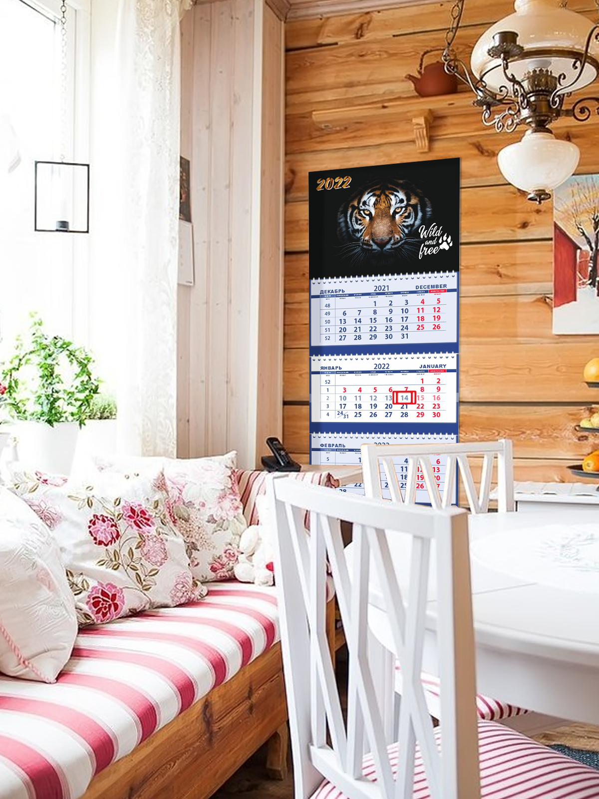 Календарь квартальный трехблочный настенный на 2022 год с Тигром. Большой настенный календарь - многофункциональный помощник на 2022 год для дома и офиса. Размер в развёрнутом виде 297х710 мм. Красочный постер украсит интерьер и подарит замечательное наст