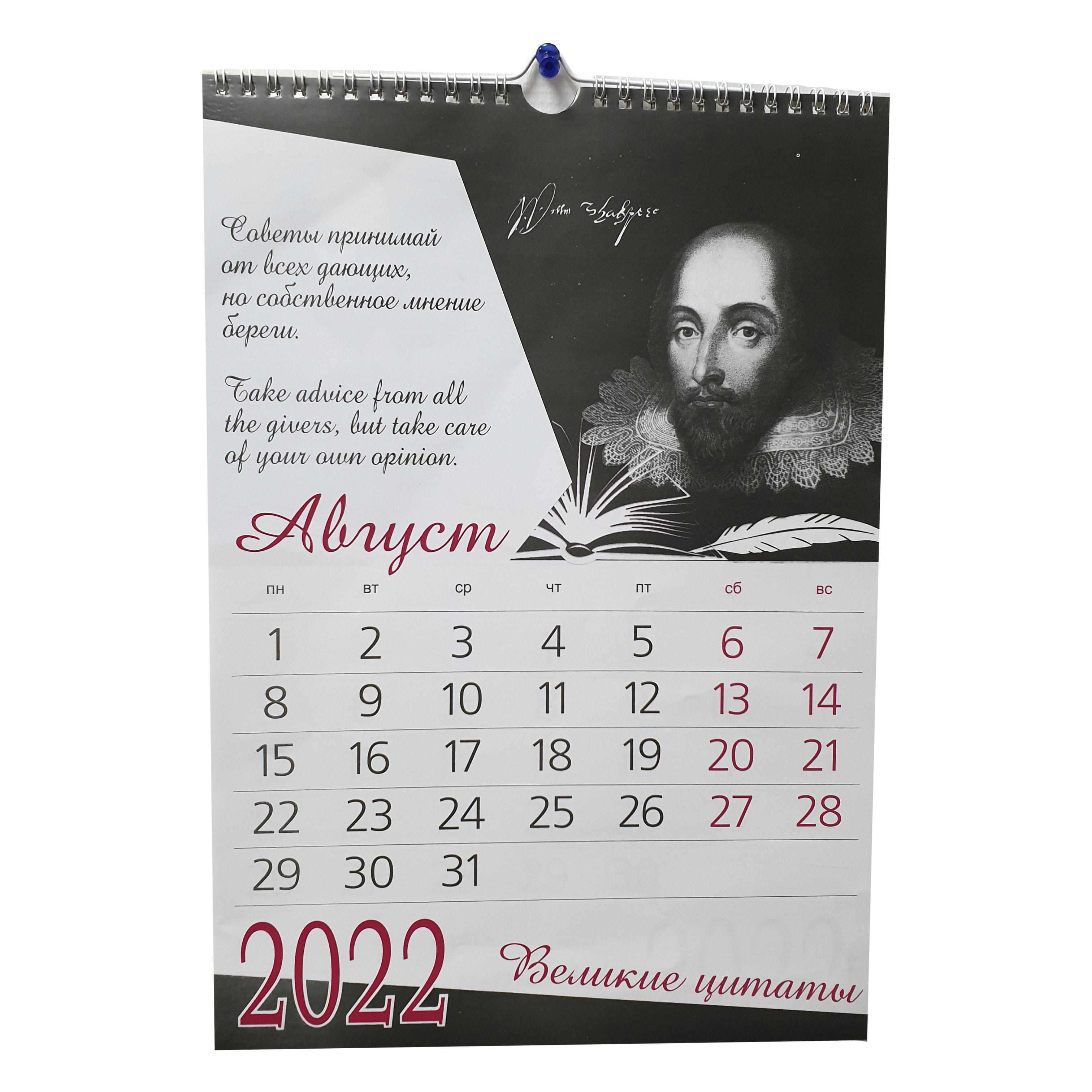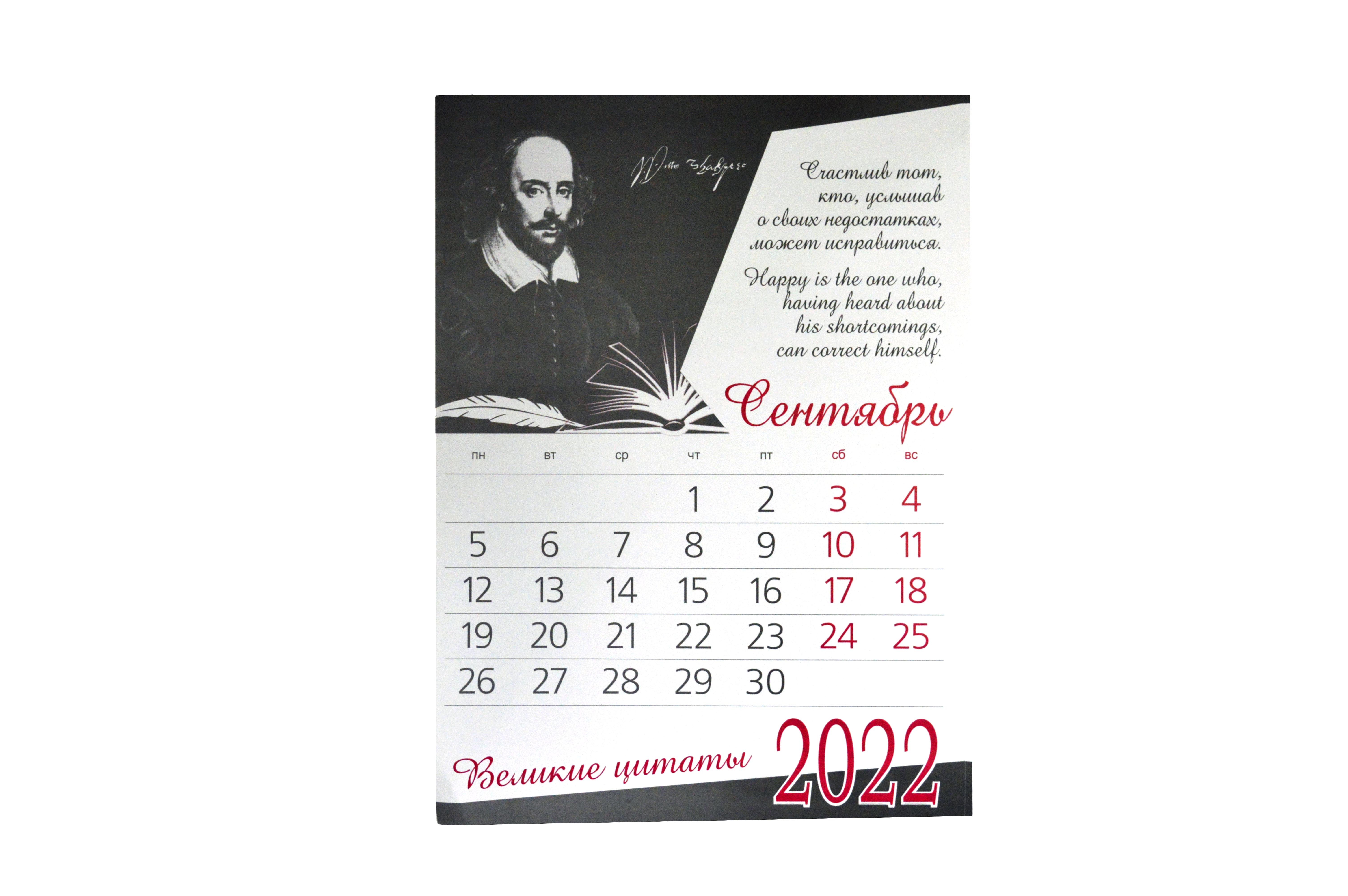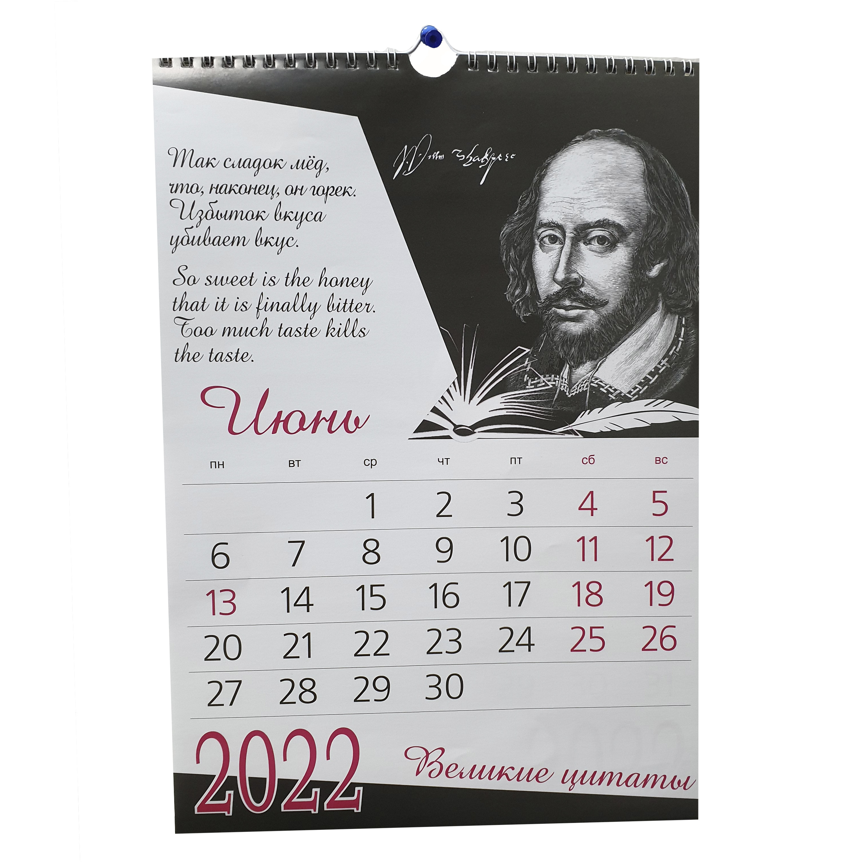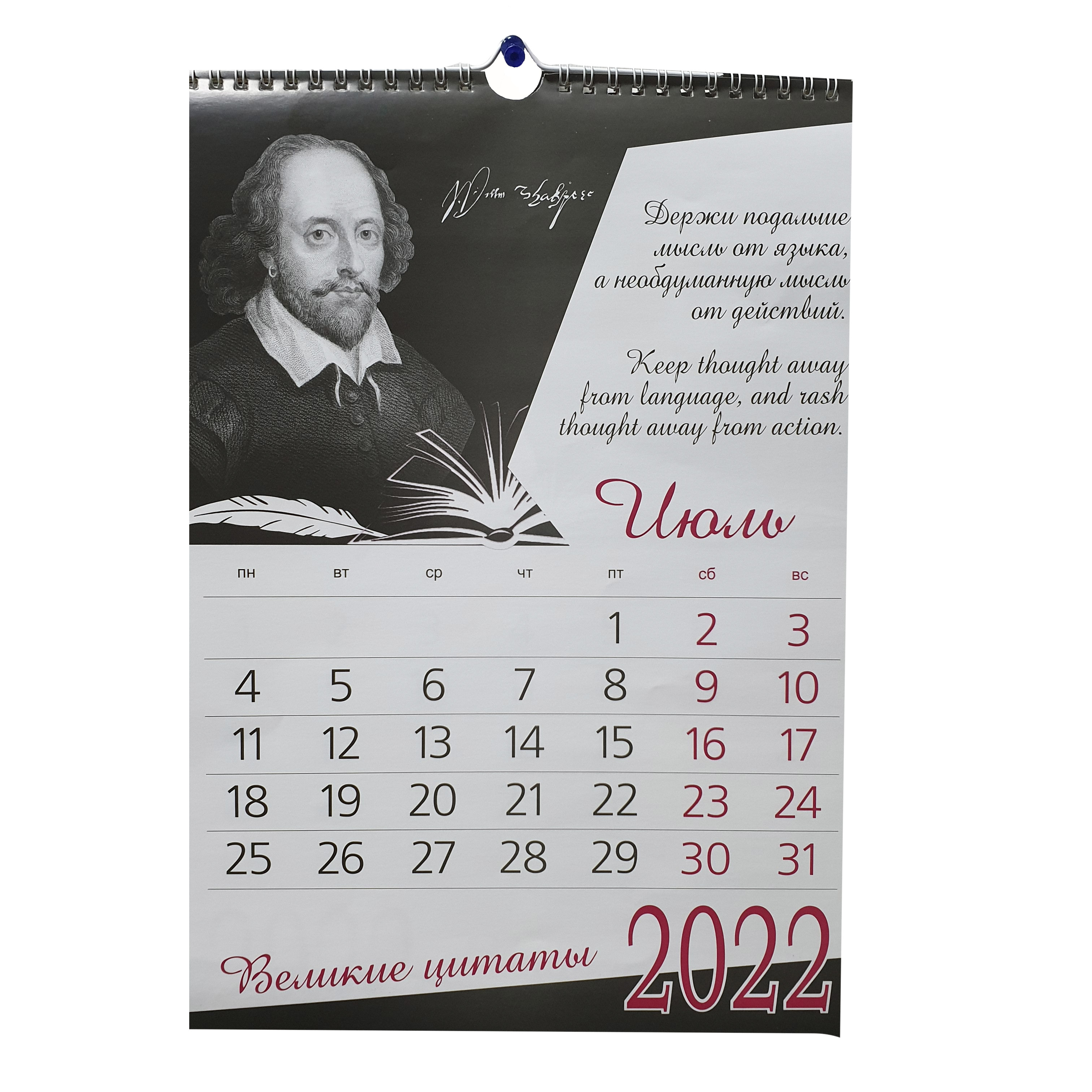 Календарь на 2022 год с великими цитатами великого Уильяма Шекспира. Каждый месяц – новое изречение английского драматурга – отличный повод вспомнить творчество классика, перечитать его шедевры, как в оригинале, так и на русском языке. По инициативе Уиль