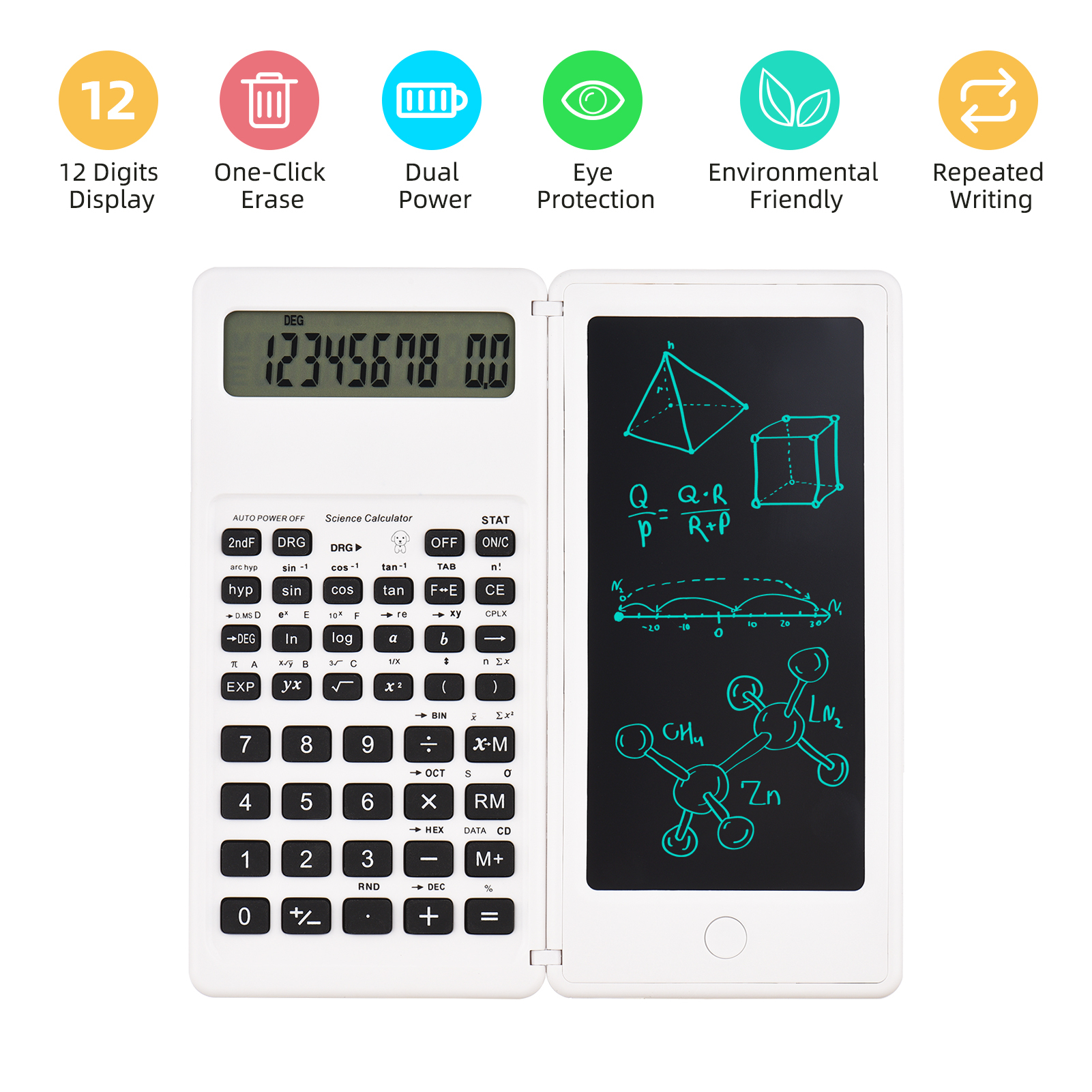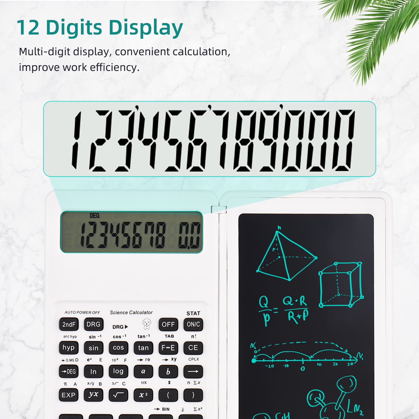 Функции: 【Два в одном】 Этот настольный калькулятор представляет собой комбинацию калькулятора и доски для рукописного ввода. С помощью магнита, прикрепленного к боковой стороне стилуса, вы можете использовать его для арифметических операций и письма или р