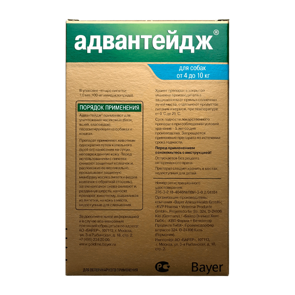 Описание: Капли на холку Адвантейдж® - продукт, помогающий вам защитить собаку от от блох, вшей и власоедов. Капли Адвантейдж® распределяются по шерсти и коже собаки и избавляют животное от блох, а также препятствуют повторному заражению блохами в течени