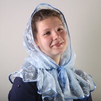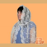 Капор для венчания "Арсения" с капюшоном элегантно дополнит образ венчающейся. В модели использована красивая кружевная ткань с орнаментом, фиксируется капор на шее с помощью завязок. Внизу – окантовка тонким кружевом.